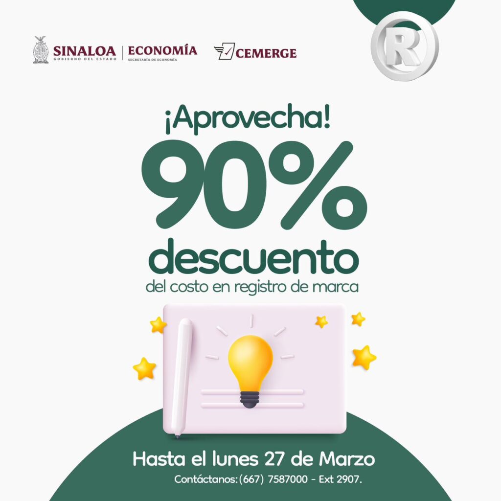 “La tarifa por el registro de marca tiene un costo normal de 3,126 pesos y con el programa del 90 % de descuento el costo es de 312 pesos”, apuntó.
