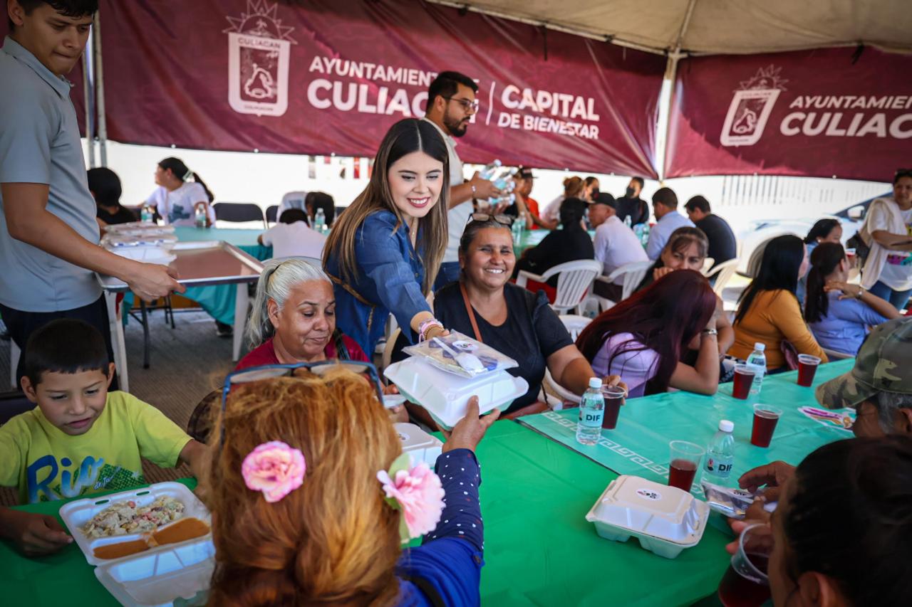 En esta actividad, también participó la Secretaria de las Mujeres en Culiacán, Lic. María Elena Armenta de la Rocha, quien se sumó el postre, repartiendo pan de mujer a los usuarios.