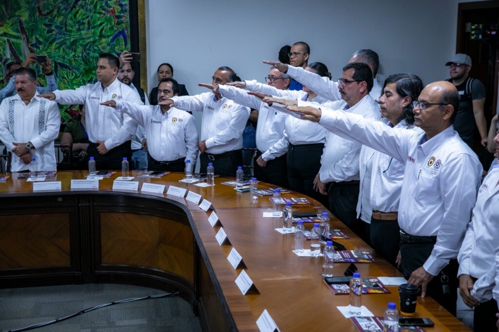 Acompañaron al Gobernador en este evento de Instalación Permanente del Consejo, representantes de la Marina Armada de México, Sedena y Guardia Nacional, así como las y los funcionarios del gabinete estatal, además de los directivos de los cuerpos de auxilio y protección como Cruz Roja, Bomberos y representantes de la Comisión Nacional del Agua.