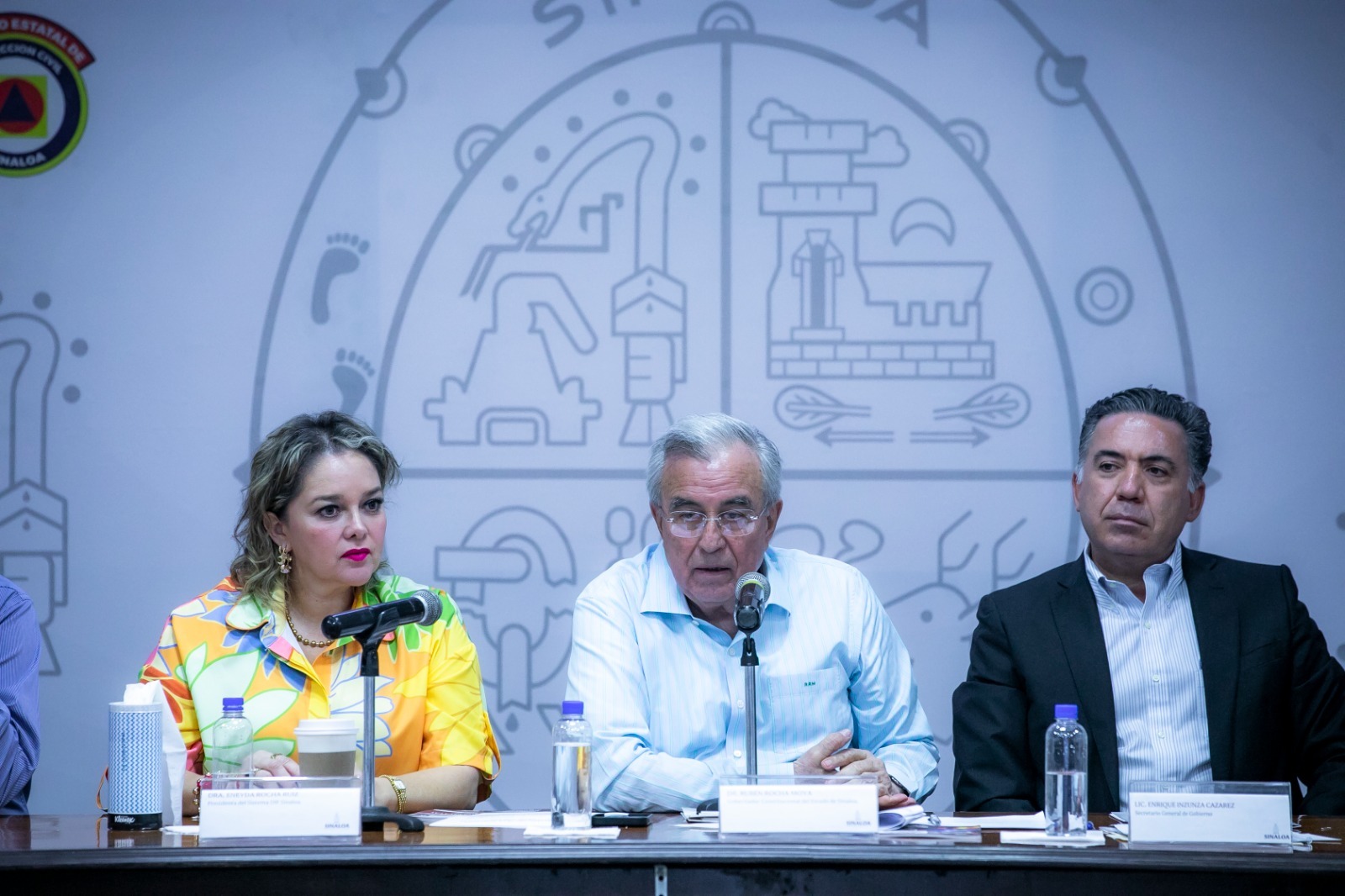 Acompañado del Secretario General de Gobierno, Enrique Inzunza Cázarez, quien funge como Secretario Ejecutivo del Consejo y Aurelio Roy Navarrete Cuevas, Director del Instituto Estatal de Protección Civil y Secretario Técnico del Consejo, el mandatario estatal en su carácter de Presidente del Consejo, exhortó a los funcionarios presentes a trabajar de manera conjunta por el bienestar de la ciudadanía ante la cercanía de la temporada de lluvias y huracanes.