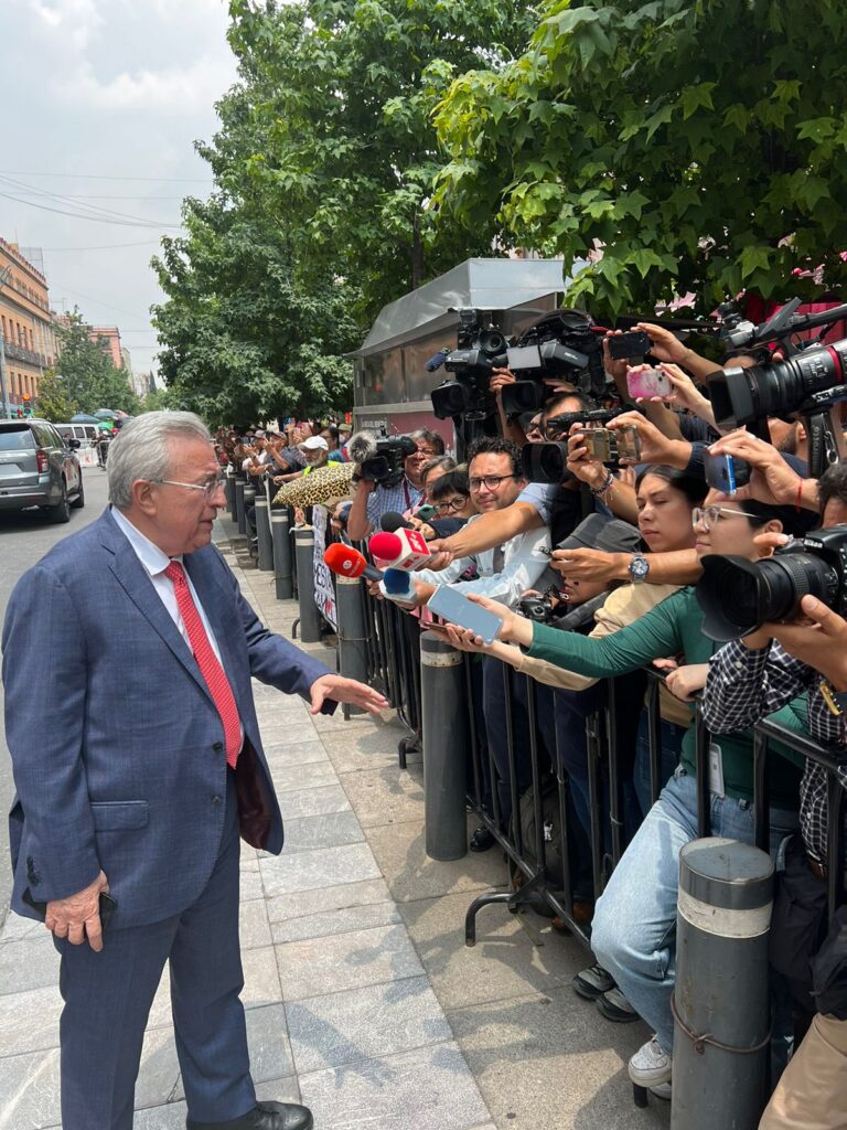 Al término del encuentro con el presidente López Obrador, el gobernador Rocha atendió a los medios de comunicación nacionales acompañado por los gobernadores de Morelos, Cuauhtémoc Blanco; de Baja California Sur, Víctor Manuel Castro Cosío; y de San Luis Potosí, José Ricardo Gallardo Cardona.