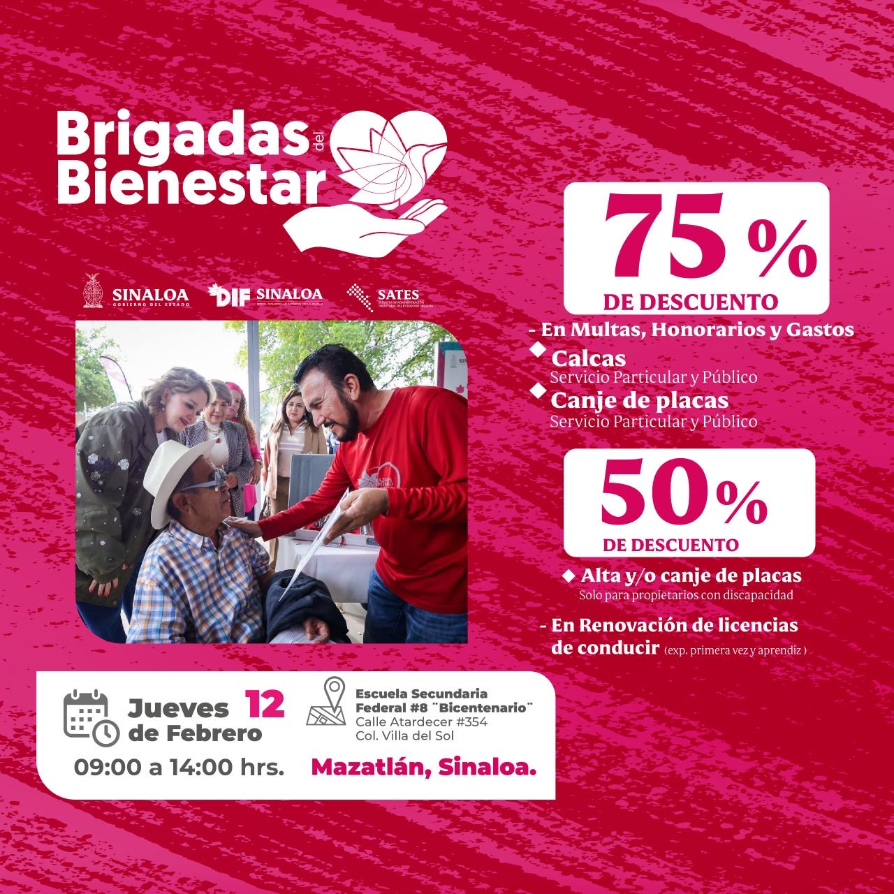 Esta emisión se llevará a cabo el día jueves 12 de febrero del presente, en la Escuela Secundaria Federal #8 ”Bicentenario”; ubicada en Calle Atardecer #354, colonia Villa del Sol, Mazatlán, Sinaloa. Con un horario de atención de 9:00 a 14:00 horas; contemplándose los siguientes estímulos fiscales: