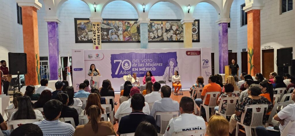 “Yo vengo con mucho gusto a esta tierra a aportar un poco de lo que la vida me ha permitido aprender, hacerlo con mucho gusto, y en estos festejos del 70 aniversario de que logramos la ciudadanía las mujeres, el reconocimiento a votar y ser votadas tenemos que hacer una reflexión, y entender que los ordenamientos jurídicos pueden estar ahí, pero que necesitamos aprenderlos para accionarlos y obtener mayor resultado”.