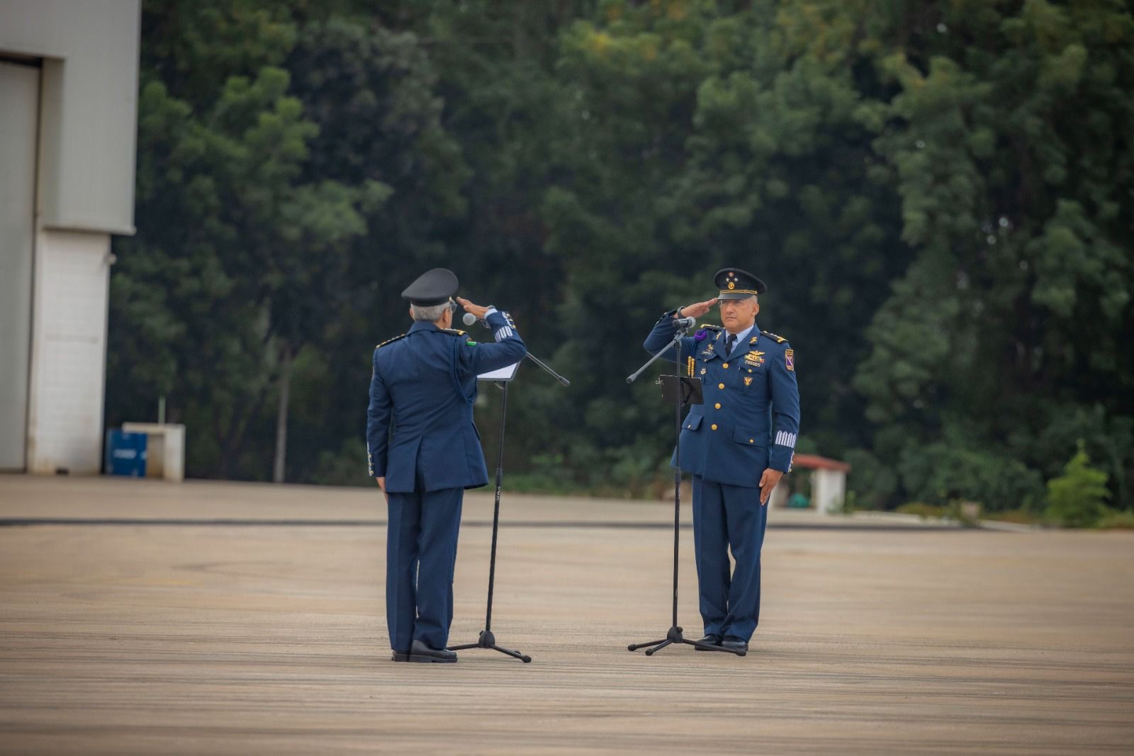 Culiacán, Sinaloa.- El gobernador Rubén Rocha Moya asistió a la ceremonia donde el general de Ala Piloto Aviador, Edgar Emanuel Campos Martínez, asumió la comandancia de la recién creada Novena Zona Aérea Militar, cuya sede será la Base Aérea Militar No. 10, de la cual ya era el comandante, cambio que obedece a la aplicación la Ley de Protección del Espacio Aéreo Mexicano.