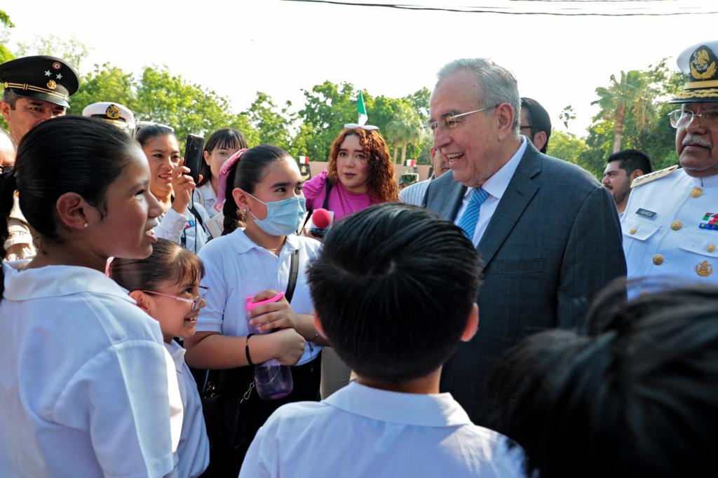Culiacán, Sinaloa.- El gobernador Rubén Rocha Moya asistió a la ceremonia de conmemoración del 176 aniversario de la Gesta Heroica del Castillo de Chapultepec de 1847 y del Bicentenario de la creación del Heroico Colegio Militar al pie del monumento a los Niños Héroes de Chapultepec, ubicado en el Campo Militar Número 9 General Ramón F. Iturbe.