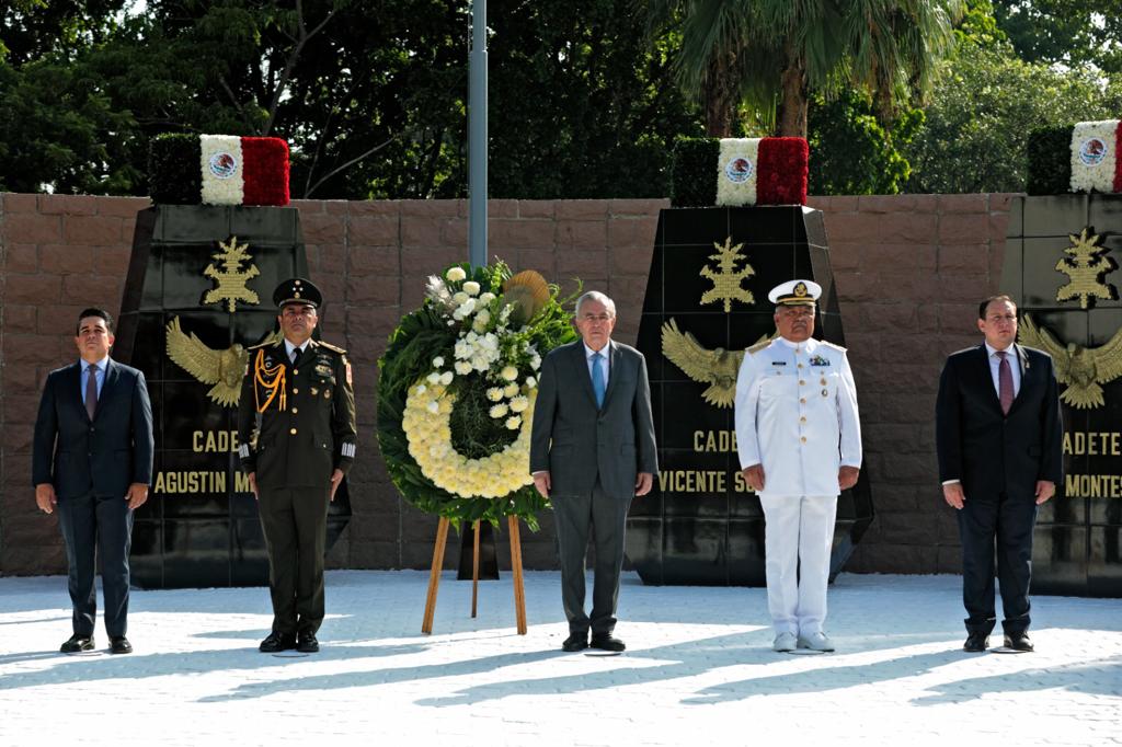 Rocha acompañado por los mandos militares y civiles llevaron a cabo una ofrenda florar acompañada de una Guardia de Honor para los Niños Héroes de Chapultepec quienes dieron su vida en la defensa de la patria ante la invasión norteamericana.