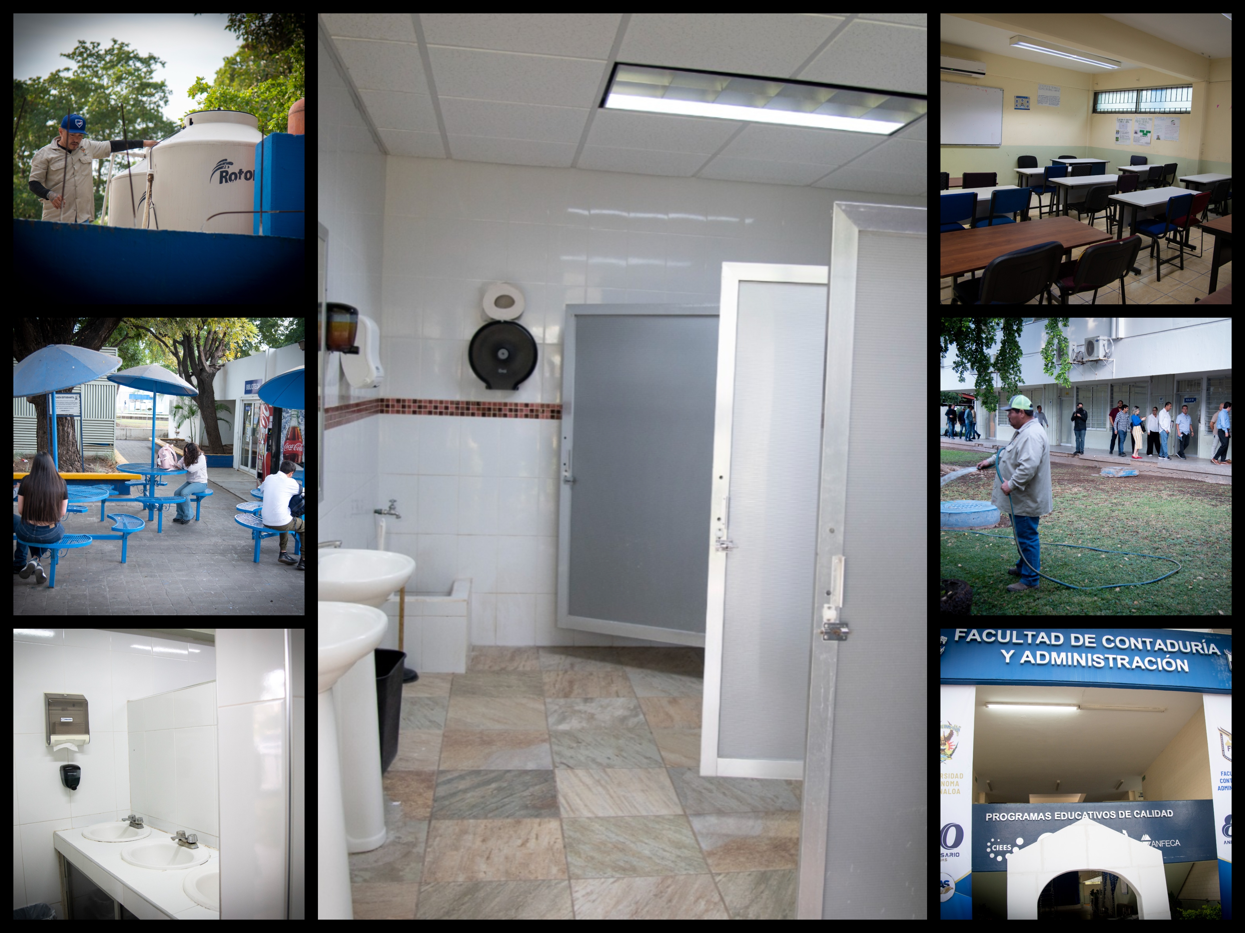 Los directores de Construcción y Mantenimiento, Control de Bienes e Inventarios, Recursos Humanos, Personal y Comunicación Social, así como parte de los equipos de trabajo de estas dependencias, se presentaron a las 7:00 horas para iniciar esta labor de supervisión en la Facultad de Contabilidad y Administración (FCA) y luego continuar en las facultades de Derecho, Psicología, Odontología, Biología, Ciencias de la Tierra y el Espacio, Ciencias Físico-Matemáticas, Facultad de Ingeniería, y continuar en el Polígono Sur, labor que se realiza también en todas las escuelas preparatorias.