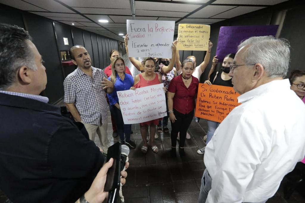 El gobernador Rocha tuvo este acercamiento con un grupo representativo que se manifestó en el sótano de Palacio de Gobierno, ante quienes se comprometió en agilizar las gestiones para los pagos pendientes, acción que fue bien recibida por el grupo de maestras y maestros quienes agradecieron al mandatario la voluntad de dar respuesta a sus demandas.