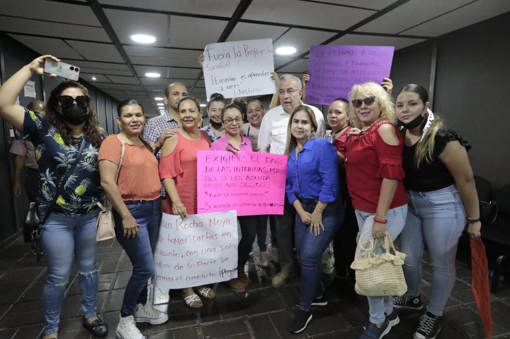 Culiacán, Sinaloa.- El gobernador Rubén Rocha atendió a un grupo de maestras y maestros del SNTE 53 que han cubierto interinatos en educación preescolar y primaria y que están demandando el pago de sus quincenas, adeudos que se mantienen desde noviembre del 2022.