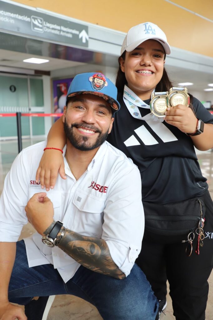 “Me siento muy emocionada, contenta al saber que traigo dos medallas de oro para el estado, y no me queda más que agradecer a todos, al Gobernador Rubén Rocha Moya, a Julio César (Cascajares), a todo Sinaloa”, indicó la lanzadora de disco y bala.
