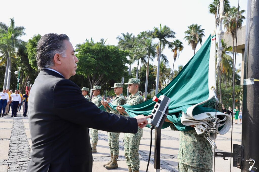 En representación del gobernador Rubén Rocha Moya, el secretario General de Gobierno Enrique Inzunza Cázarez encabezó este acto conmemorativo acompañado del presidente de la Mesa Directiva del H. Congreso del Estado de Sinaloa Ricardo Madrid Pérez, el presidente del Supremo Tribunal de Justicia Jesús Iván Chávez Rangel, la tesorera del H. Ayuntamiento de Culiacán Laura Araceli Nieblas Leal, el comandante de la 9/a Zona Militar y general D.E.M. Alfredo Salgado Vargas, el inspector General y coordinador del 8/o Batallón de la Guardia Nacional Fidencio Márquez Reyes y el mayor de la Fuerza Aérea Especialista en Electrónica de Aviación Julio César Espinoza Rodríguez.