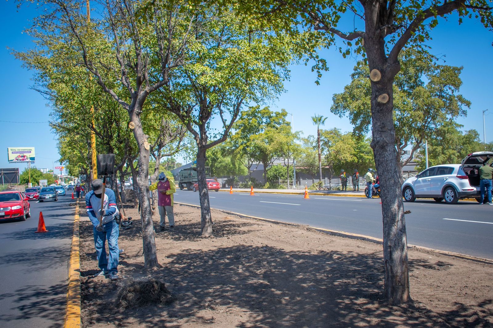 Culiacán, Sinaloa; a 15 de abril de 2026.- El Ayuntamiento de Culiacán, a través del área de Parques y Jardines, lleva a cabo trabajos de rehabilitación en el camellón central del bulevar José Limón, en el tramo comprendido desde la glorieta Cuauhtémoc, conocida como “La Canasta”, hasta el bulevar República de Brasil.