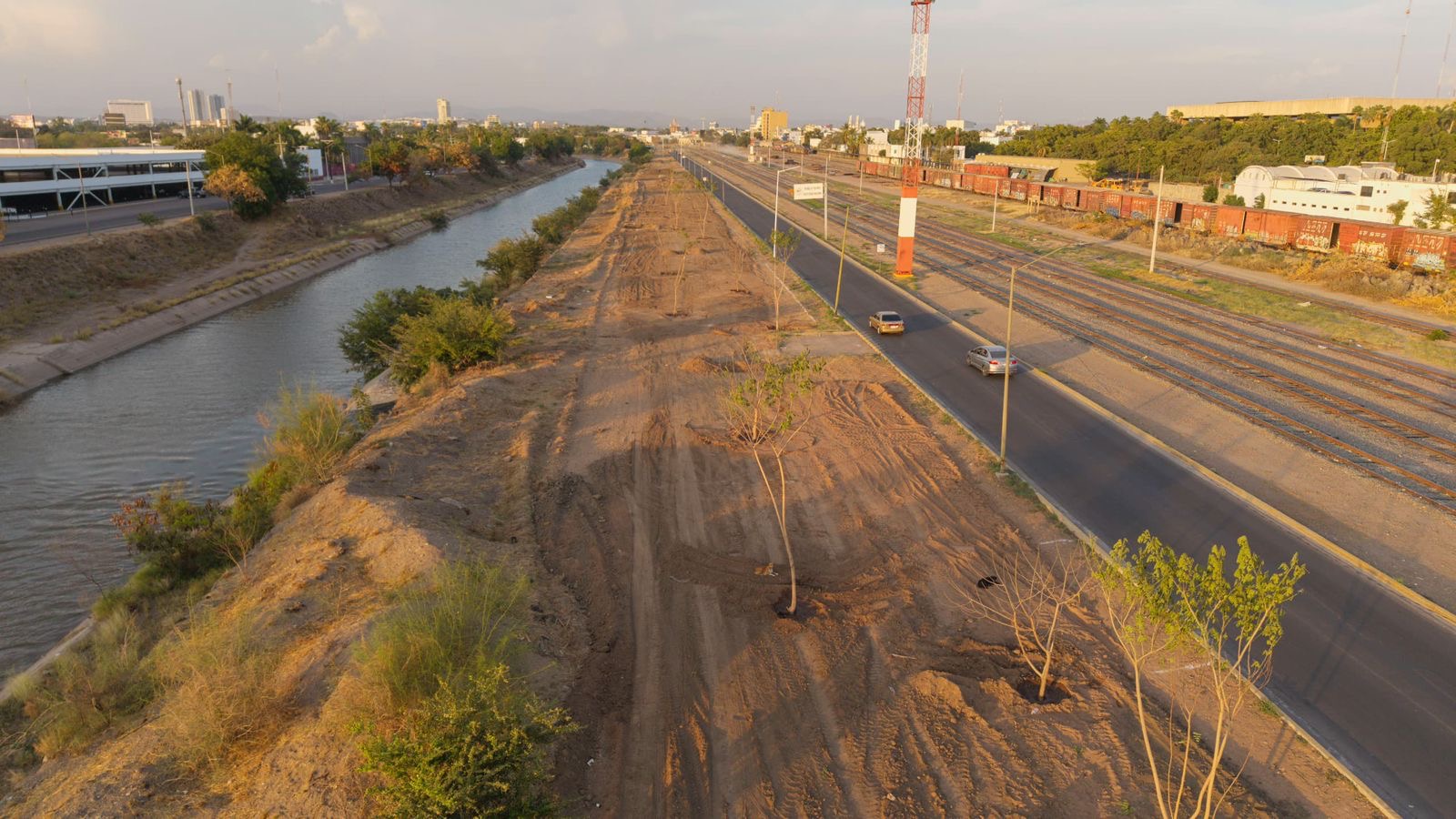 Culiacán, Sinaloa; a 30 de marzo de 2026.– El Ayuntamiento de Culiacán continúa avanzando en la obra de mejoramiento urbano del Eje Federalismo, en el sector Recursos Hidráulicos, donde ya se desarrollan trabajos de arborización como parte del proyecto de infraestructura verde.