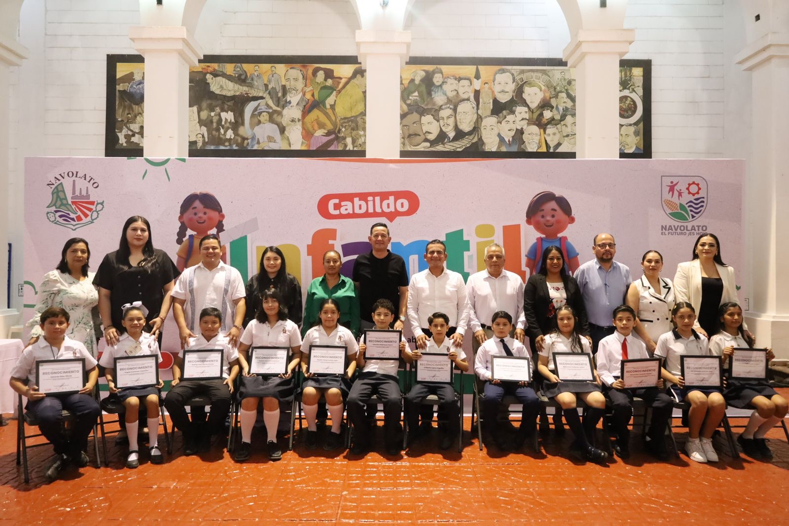 Navolato, Sinaloa, a 28 de abril de 2026.- El Ayuntamiento de Navolato realizó la entrega de reconocimientos y estímulos económicos a las niñas y niños que integran el Cabildo Infantil 2026, destacando su participación y el compromiso mostrado mediante propuestas orientadas al desarrollo del municipio.