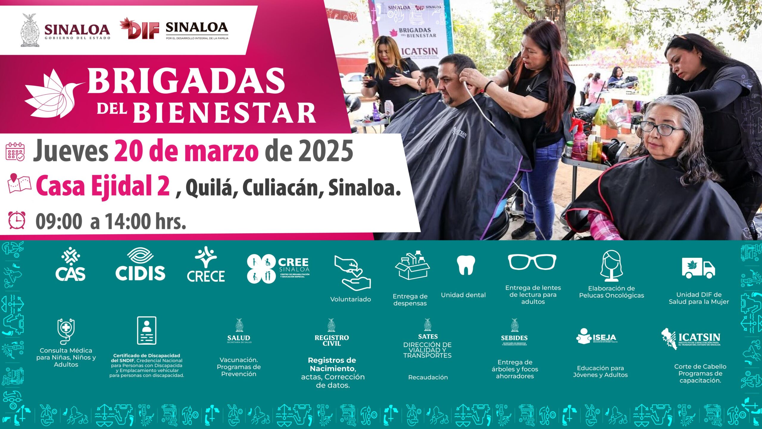 Las brigadas se llevarán a cabo en la Casa Ejidal número II en calle Domingo Rubí de la sindicatura de Quilá perteneciente al municipio de Culiacán, en un horario de 9:00 a 14:00 horas.