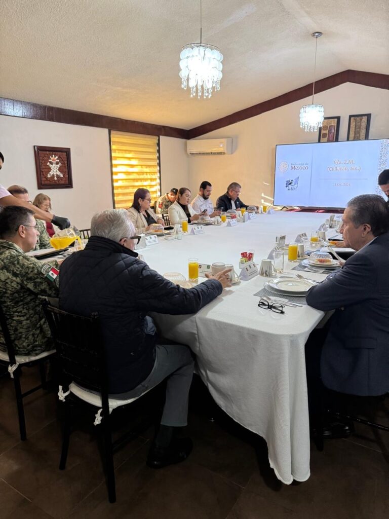 Culiacán, Sinaloa.- Implementadas desde el inicio de la administración del Gobernador Rubén Rocha Moya, las reuniones de la Mesa de Coordinación Estatal para la Construcción de la Paz han sido fundamentales para revisar las estrategias de seguridad y tomar decisiones de manera coordinada entre las corporaciones de seguridad de los tres órdenes de gobierno.