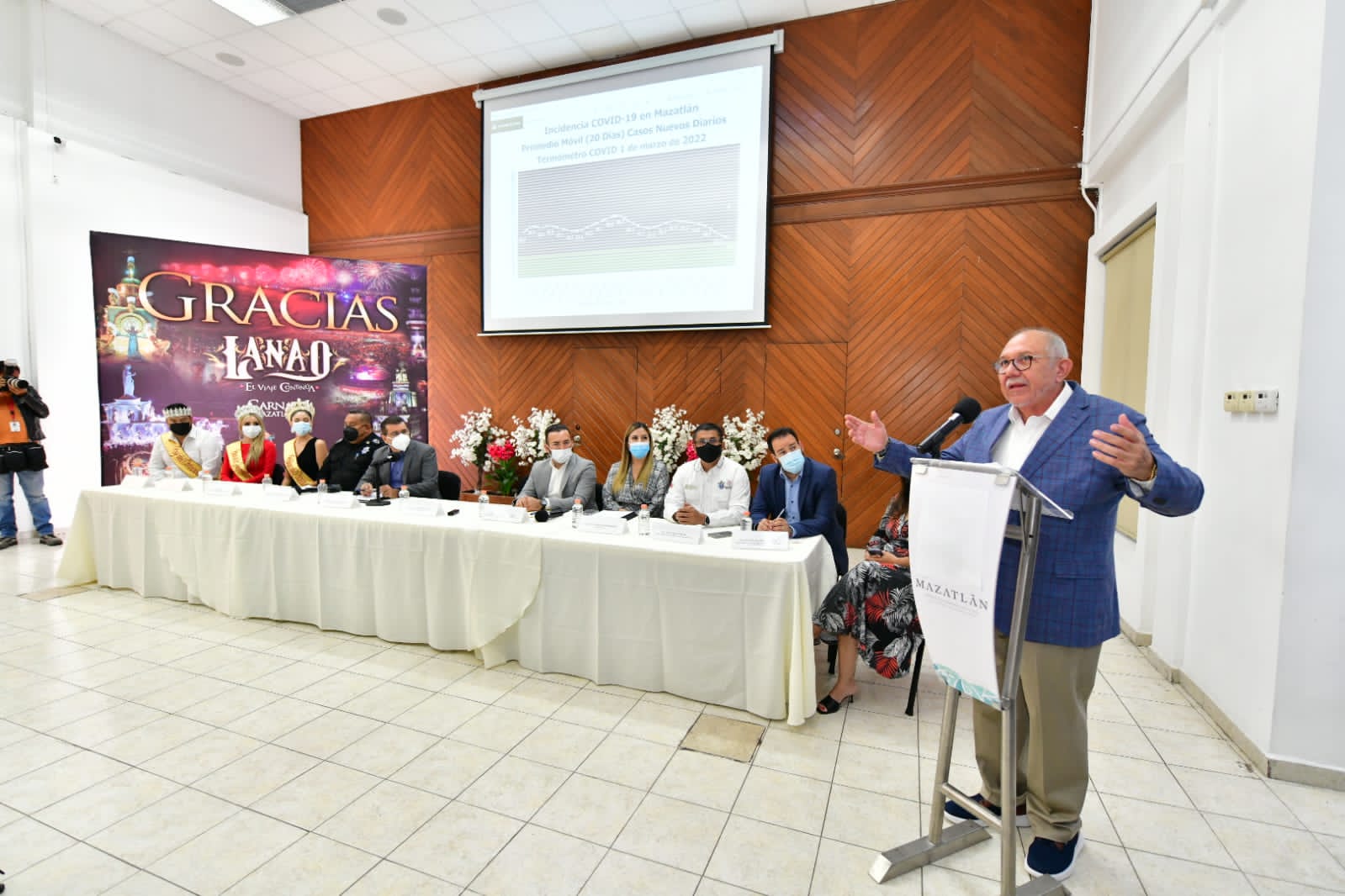 Mazatlán.- La celebración del Carnaval Internacional de Mazatlán 2022, «Lanao, el Viaje Continúa», concluyó con saldo blanco y con éxito, aseguró el Alcalde Luis Guillermo Benitez Torres durante la conferencia para dar a conocer los resultados del Operativo de Bioseguridad de la fiesta.
