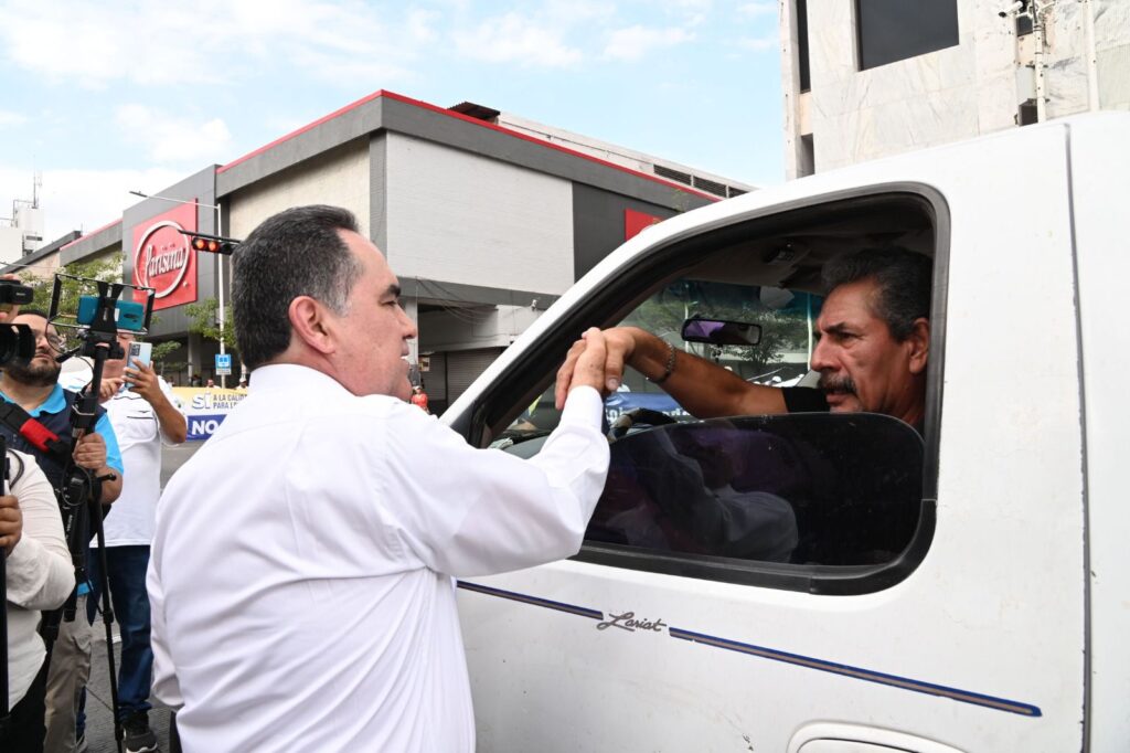 El Rector entregó directamente a los ciudadanos los volantes donde se rechaza el sometimiento al Gobierno, su intromisión en la vida universitaria, el hostigamiento, la violencia, la represión, la manipulación mediática, y la intromisión del Congreso Estatal en la Universidad. Entre los carros que circulaban por la arteria principal de la capital del estado y acompañado de docentes, personal administrativo, funcionarios y flanqueado siempre por su señora esposa, maestra Sofía Angulo de Madueña, también colocó calcas en los cristales de aquellos sinaloenses que apoyan la lucha de la institución.