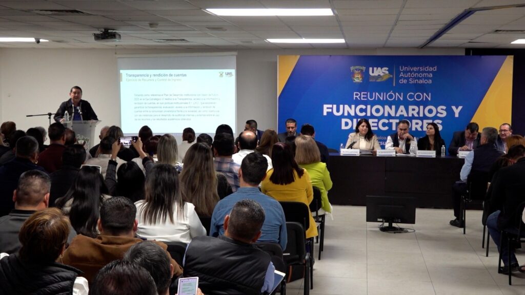 El Rector de la Universidad Autónoma de Sinaloa (UAS), doctor Jesús Madueña Molina, encabezó reunión con funcionarios de la administración central y directores de unidades académicas y organizacionales de las cuatro unidades regionales con la finalidad de proyectar la agenda de actividades académicas y administrativas de 2025.