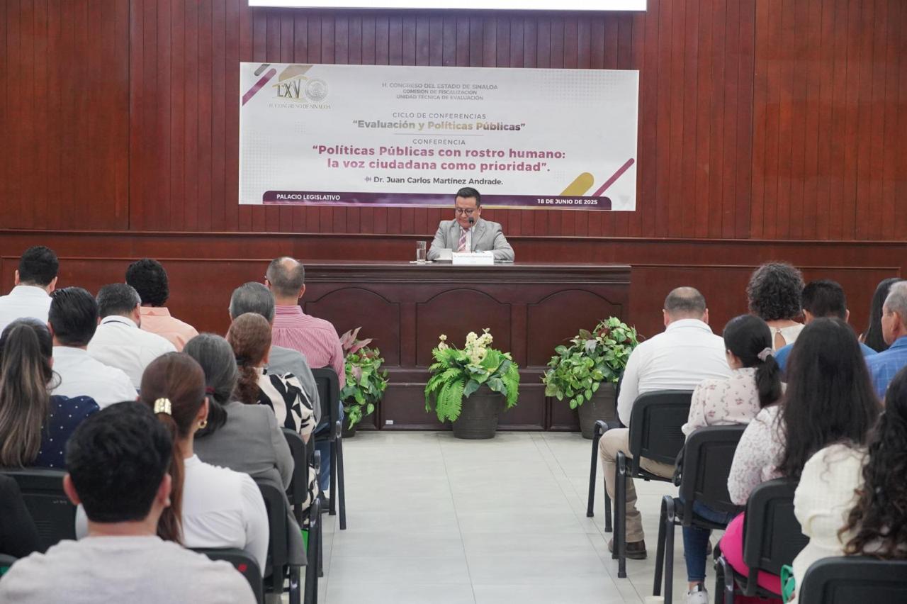 Culiacán, Sinaloa.- El doctor Juan Carlos Martínez Andrade, especialista en ciencias sociales con formación en antropología, concluyó este miércoles el ciclo de conferencias «Evaluación y Políticas Públicas» organizado por la Comisión de Fiscalización y la Unidad Técnica de Evaluación del Congreso del Estado, con una ponencia denominada “Políticas públicas con rostro humano: la voz ciudadana como prioridad».