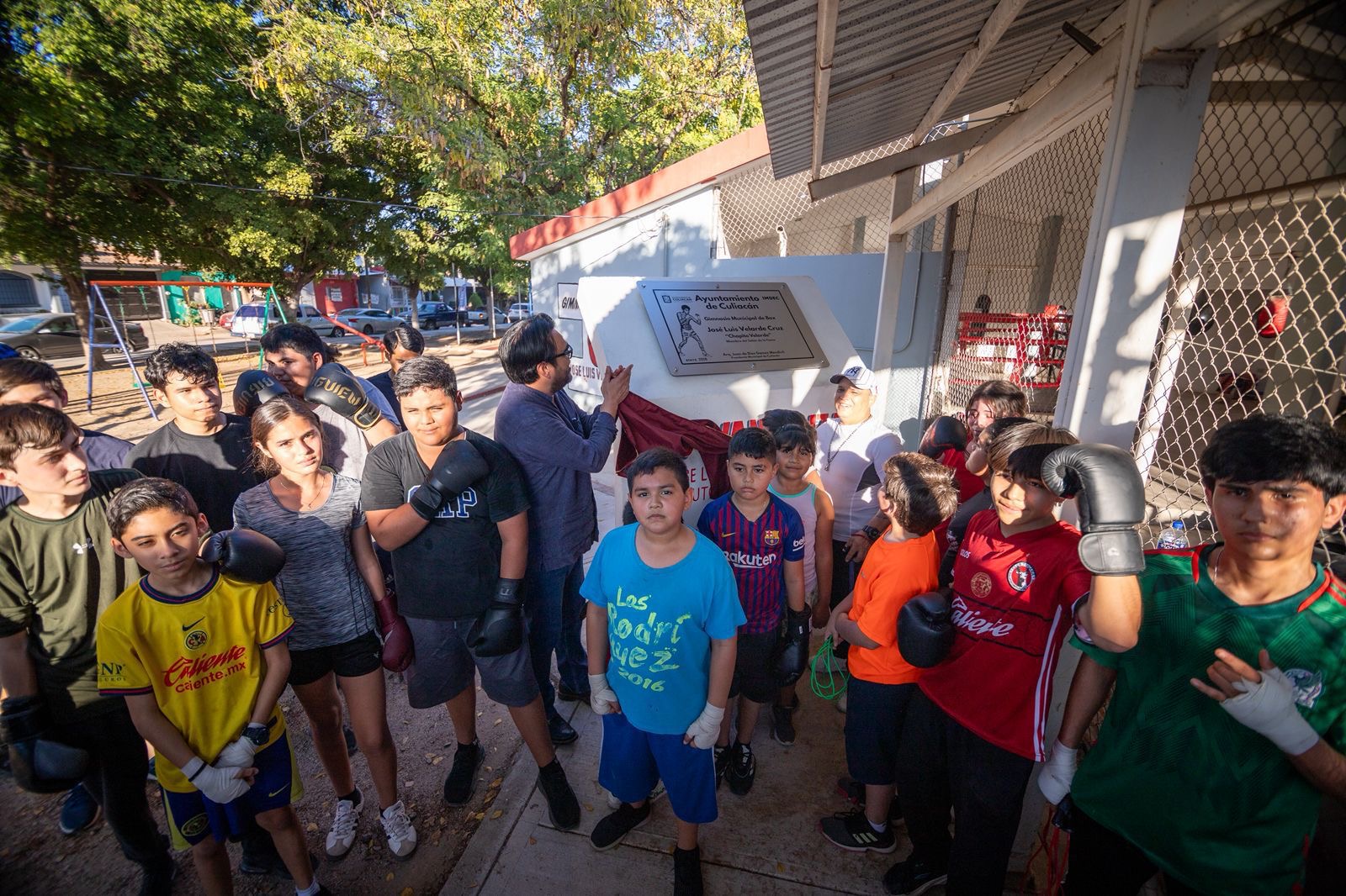 El espacio, antes vandalizado, hoy es punto de encuentro para más de 100 niñas, niños y jóvenes que practican boxeo; el alcalde reafirma el impulso a la recuperación de espacios públicos