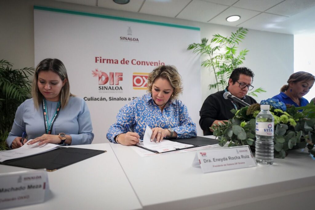 Culiacán, Sinaloa.- El Sistema DIF Sinaloa firmó dos convenios de colaboración con tiendas OXXO, el primero enfocado en parques recreativos comunitarios y el segundo en equipamiento de aulas de cómputo y rehabilitación de los Centros de Desarrollo Integral de DIF Sinaloa.