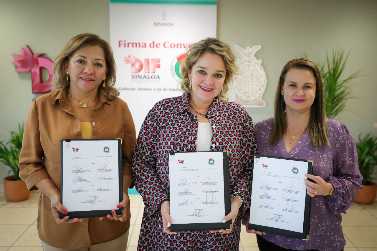 Durante la firma de convenio estuvieron presentes, la Directora General de DIF Sinaloa Dra. Alejandra Miranda Félix, Karla Daniela Millán Morales Secretaria de escalafón, Héctor Enrique Ortiz Chávez Secretario de organismos públicos descentralizados y el licenciado Josué Villa Aramburo jefe del departamento de recursos humanos DIF Sinaloa.