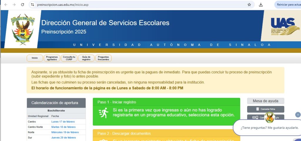 La Universidad Autónoma de Sinaloa (UAS) inició este lunes con éxito el Proceso de Preinscripción para el Ciclo Escolar 2025-2026; a las 8:00 horas abrió el portal para la entrega de fichas en el Nivel Medio Superior empezando hoy sólo con las preparatorias de la Unidad Regional Centro (URC) donde a los 15 minutos ya se habían asignado alrededor de 5 mil 500 fichas.