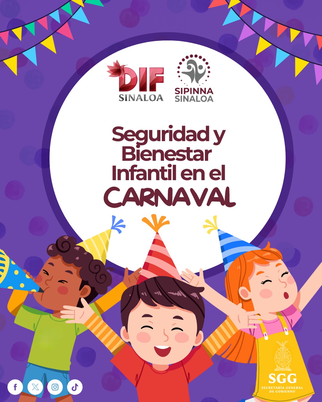 Culiacán, Sinaloa.- A fin de garantizar un entorno seguro, respetuoso y libre de cualquier práctica que vulnere los derechos de los niños, niñas y adolescentes durante las celebraciones carnavaleras a realizarse en diferentes municipios de la entidad, el DIF Sinaloa y la Secretaria Ejecutiva de SIPINNA, exhortan a instituciones y sociedad en general a adoptar un enfoque preventivo promoviendo celebraciones libres de cualquier forma de violencia y/o exposición indebida que vulnere los derechos de los menores.