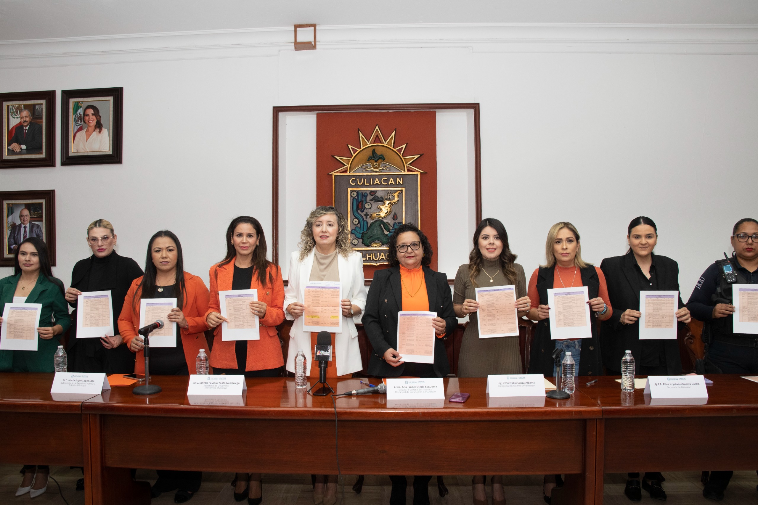 En la rueda de prensa, estuvieron presentes la secretaria de Bienestar, Aline Guerra García; la secretaria de Desarrollo Económico Municipal, Janeth Tostado Noriega; la presidenta del Sistema DIF Bienestar de Culiacán, Irma Gasca Aldana; la titular de SIPINNA Culiacán, Elisa Serrano Carreón; la directora del COMPAVIF Culiacán, Yuridia Román González; entre otras personalidades.