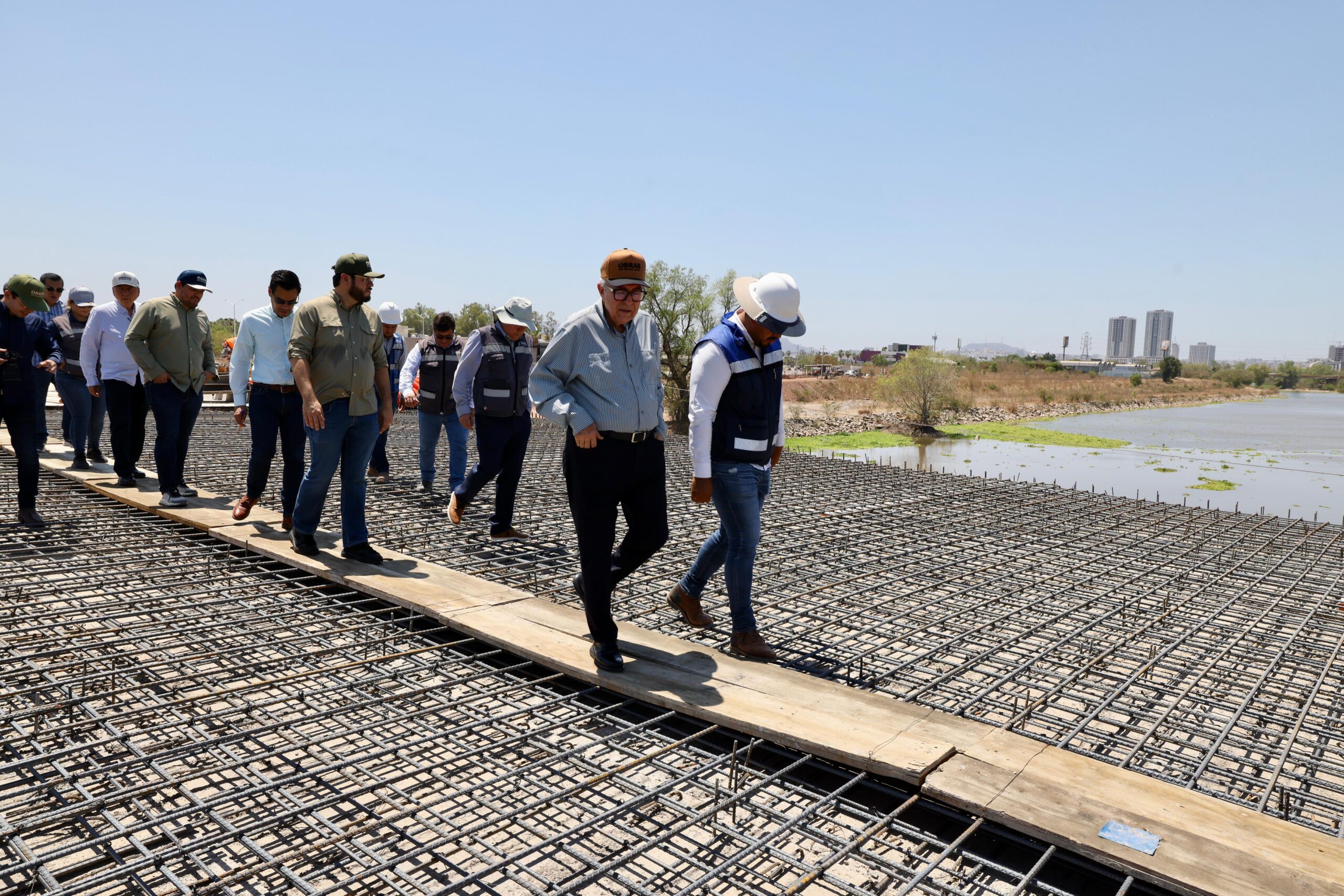 Culiacán, Sinaloa.- Para garantizar que el trabajo se realice de acuerdo a las especificaciones requeridas y en los tiempos de ejecución prometidos, la mañana de este jueves, el Gobernador Rubén Rocha Moya, realizó la supervisión del puente que cruza el río Humaya e interconecta la zona de Santa Fe con el Blvd. Enrique Sánchez Alonso, facilitando el traslado a diferentes puntos de la ciudad.