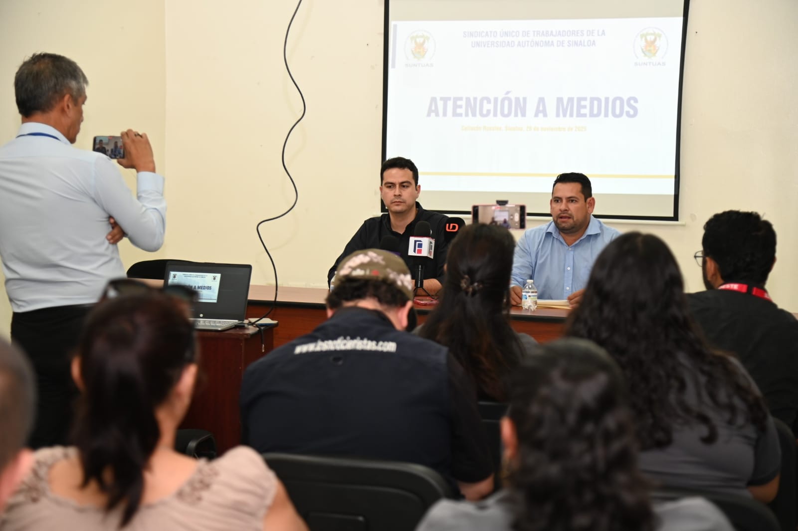 Ante medios de comunicación, el Secretario General del SUNTUAS, maestro Samuel Jesús Castro Camacho, leyó el comunicado dirigido a las autoridades federales, en donde señala que la casa de estudios atendió puntualmente las observaciones del estudio actuarial que realizó la Subsecretaría de Educación Superior.