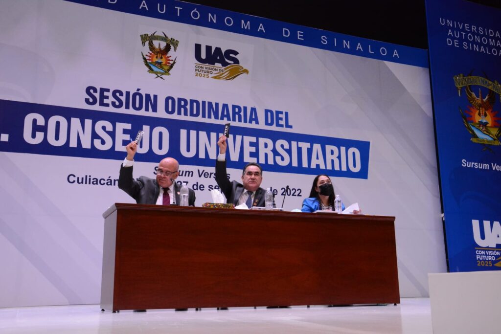 El H. Consejo Universitario de la Universidad Autónoma de Sinaloa (UAS), en Sesión Ordinaria presidida por el Rector, doctor Jesús Madueña Molina, aprobó el nombramiento de los integrantes del Consejo de la Contraloría Social Universitaria, para lo cual los consejeros votaron por los representantes internos y se dieron a conocer los externos, todos ellos velarán por el quehacer de la institución.