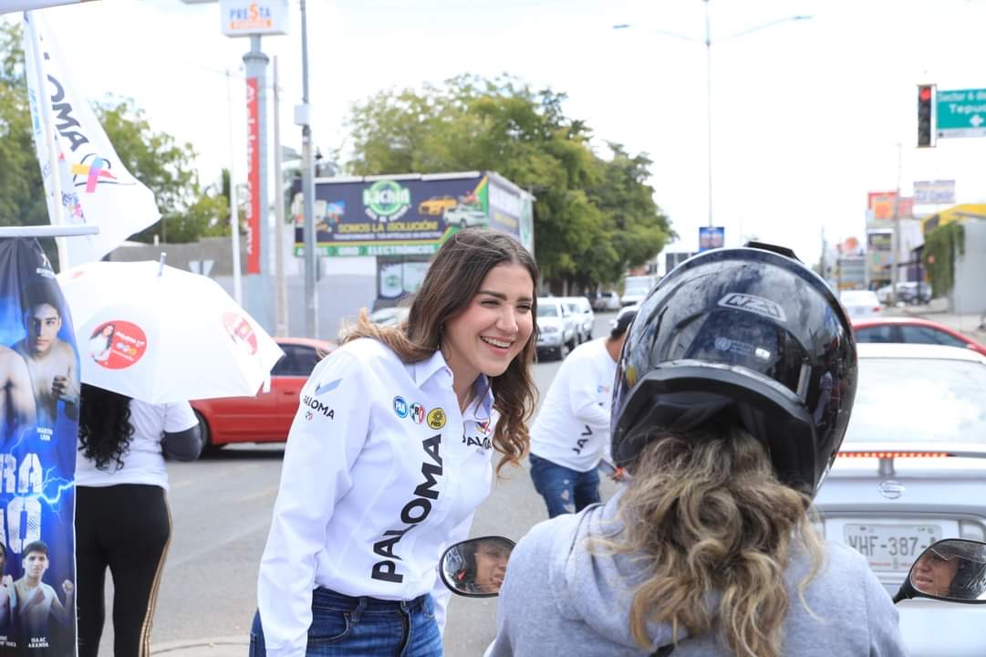 Saludando a los conductores y pidiendo su apoyo para las próximas elecciones, Paloma Sánchez mencionaba que hay que trabajar para que nuestras niñas y niños no tengan que vivir lo que nosotros sufrimos, reiterando que tenemos la responsabilidad porque necesitamos un estado donde no te sientas inseguro al salir, con oportunidades, apoyos para el campo, para los pescadores, ganaderos y más.
