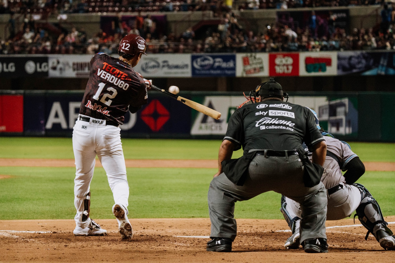 El equipo guinda respondió con tres en la parte baja de la cuarta entrada. Jesús Fabela y Sebastián Elizalde ligaron hits contra Jesús Huerta. Luego, Thomas Dillard pegó el primer tablazo de vuelta entera de la noche para el equipo, por todo el jardín derecho.