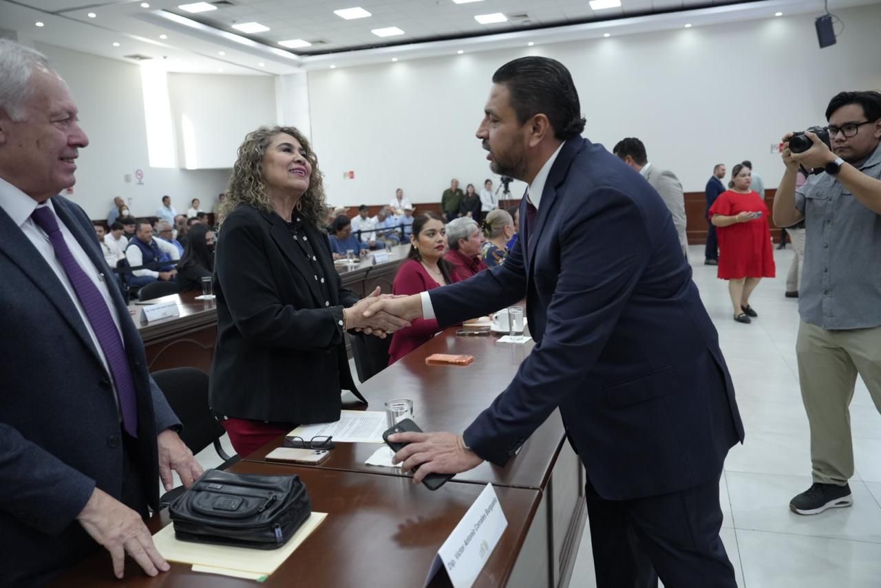 • En el marco del Cuarto Informe de Gobierno del Gobernador Rubén Rocha Moya, acudió a la glosa del mismo ante diputados del Congreso del Estado