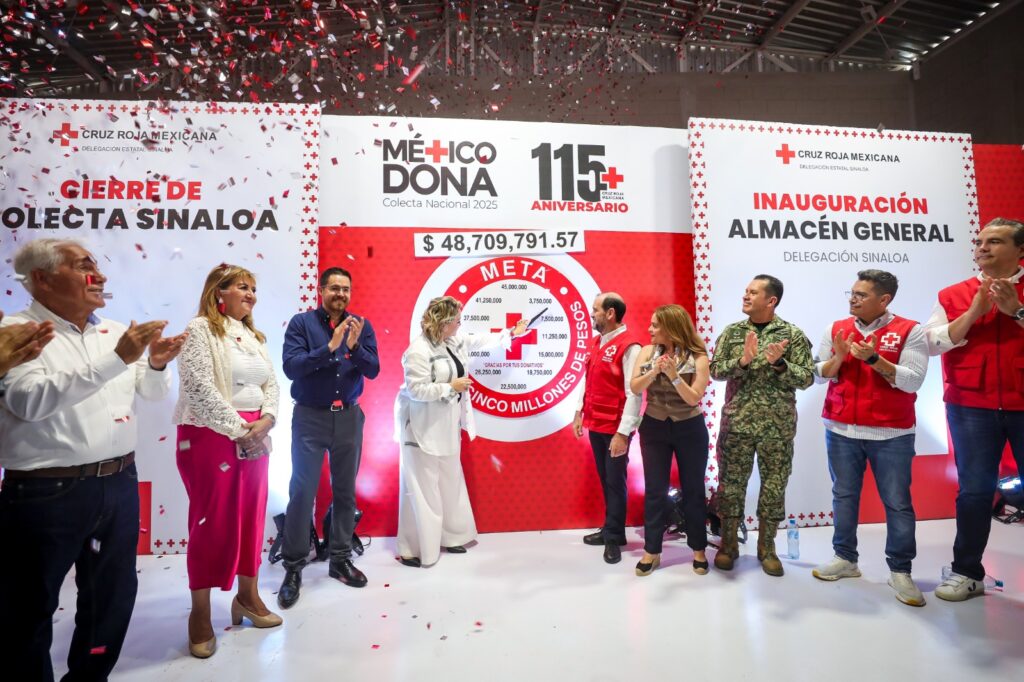 Culiacán, Sinaloa.- Destacando la participación de las y los sinaloenses para sumarse a las causas justas, este día se llevó a cabo el cierre de la colecta 2025 de Cruz Roja Sinaloa, en la que se recaudó más de 48 millones de pesos, además se resaltó como un acto inédito la donación de 10 ambulancias por parte del Gobierno de Sinaloa que encabeza el Dr. Rubén Rocha Moya, lo que demuestra un compromiso con el bienestar de la población resaltando su humanismo.