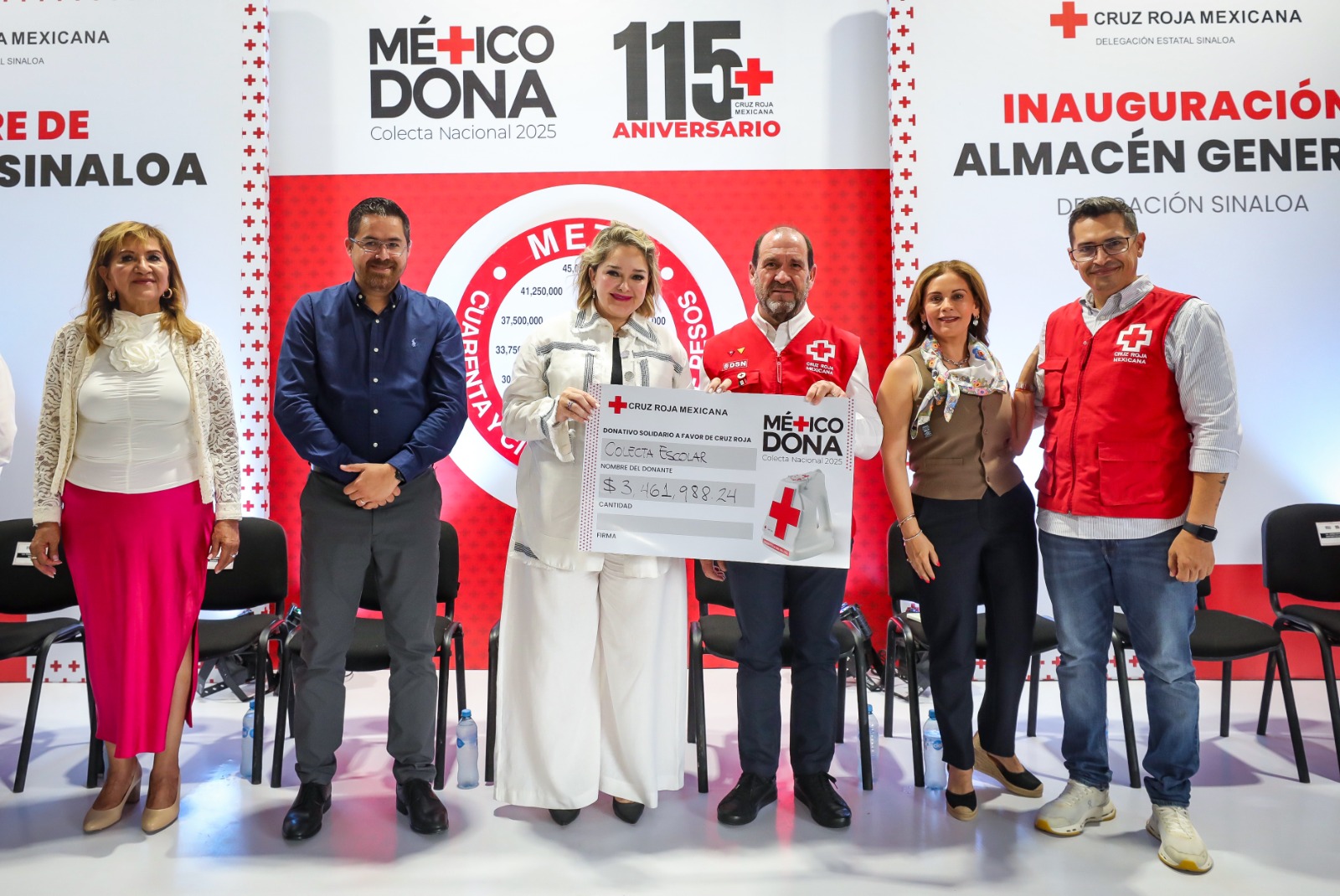 Una vez dado a conocer el total de la colecta, se procedió al corte de listón de la inauguración del almacén general de Cruz Roja Mexicana.