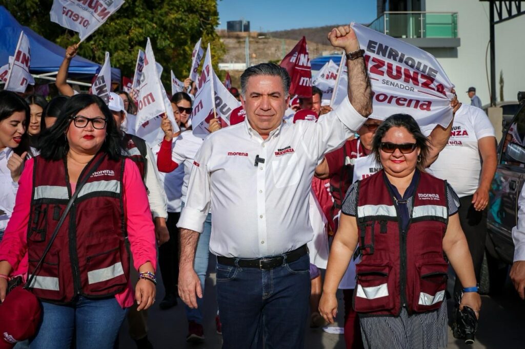 Los residentes expresaron su apoyo de manera enérgica, coreando frases como «¡Es un honor estar con Inzunza!» y «Inzunza, el pueblo te apoya».