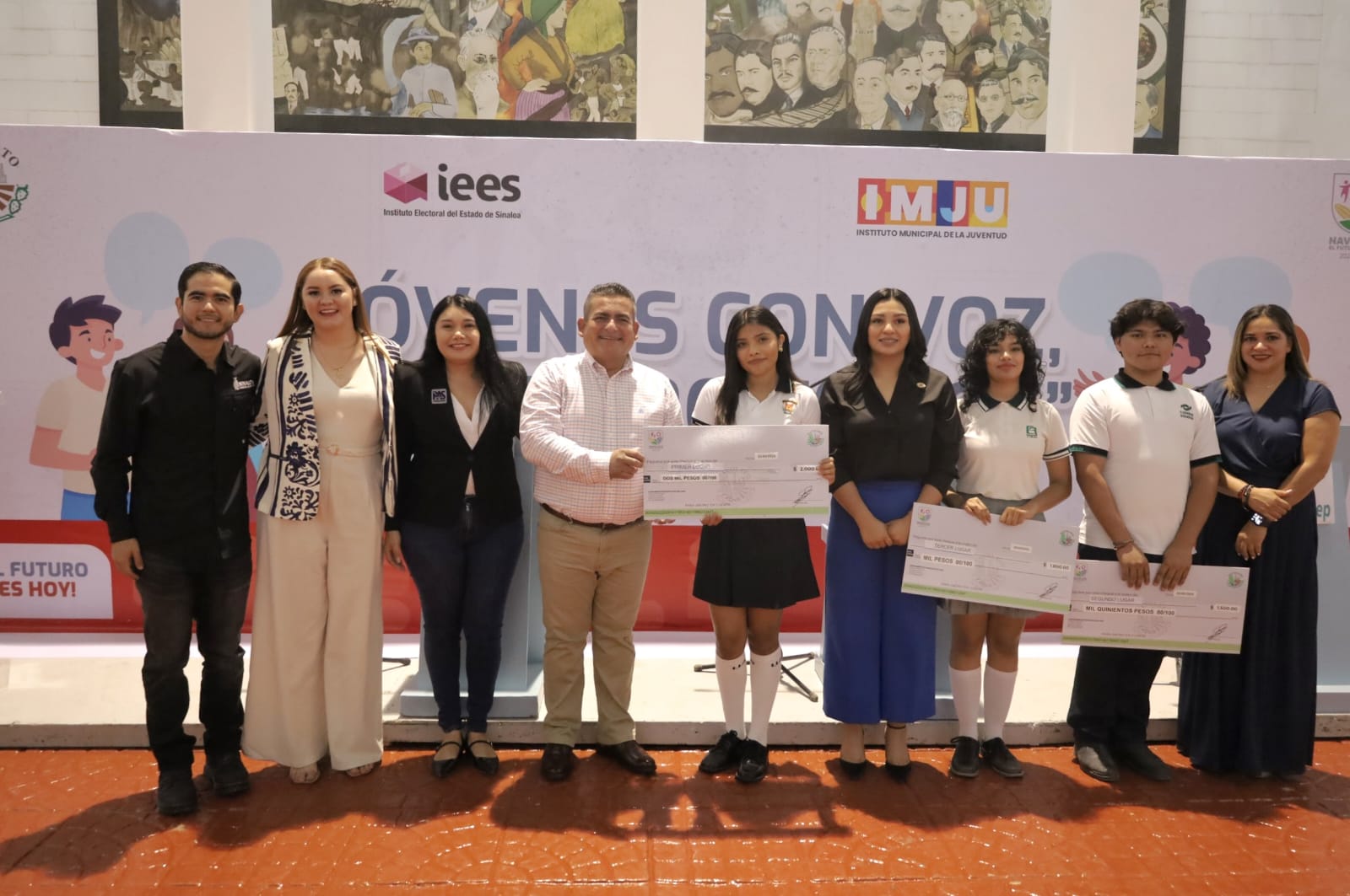 Al finalizar el concurso, el Presidente Municipal junto con el jurado calificador entregó los reconocimientos a los participantes del Primer Concurso de Debate «Jóvenes con voz, el futuro es hoy». El tercer lugar lo obtuvo Teresita de Jesús López Beltrán, del Colegio de Bachilleres del Estado de Sinaloa (COBAES), quien expuso sobre «Diversidad e Inclusión». El segundo lugar fue para Enrique Mercado Gutiérrez, del Colegio Nacional de Educación Profesional Técnica (CONALEP), con el tema «La Educación y Oportunidades Laborales». El primer lugar lo obtuvo Danna Valeria Sánchez Osuna, de la Universidad Autónoma de Sinaloa (UAS), quien presentó el tema «Cambio Climático y Sostenibilidad».