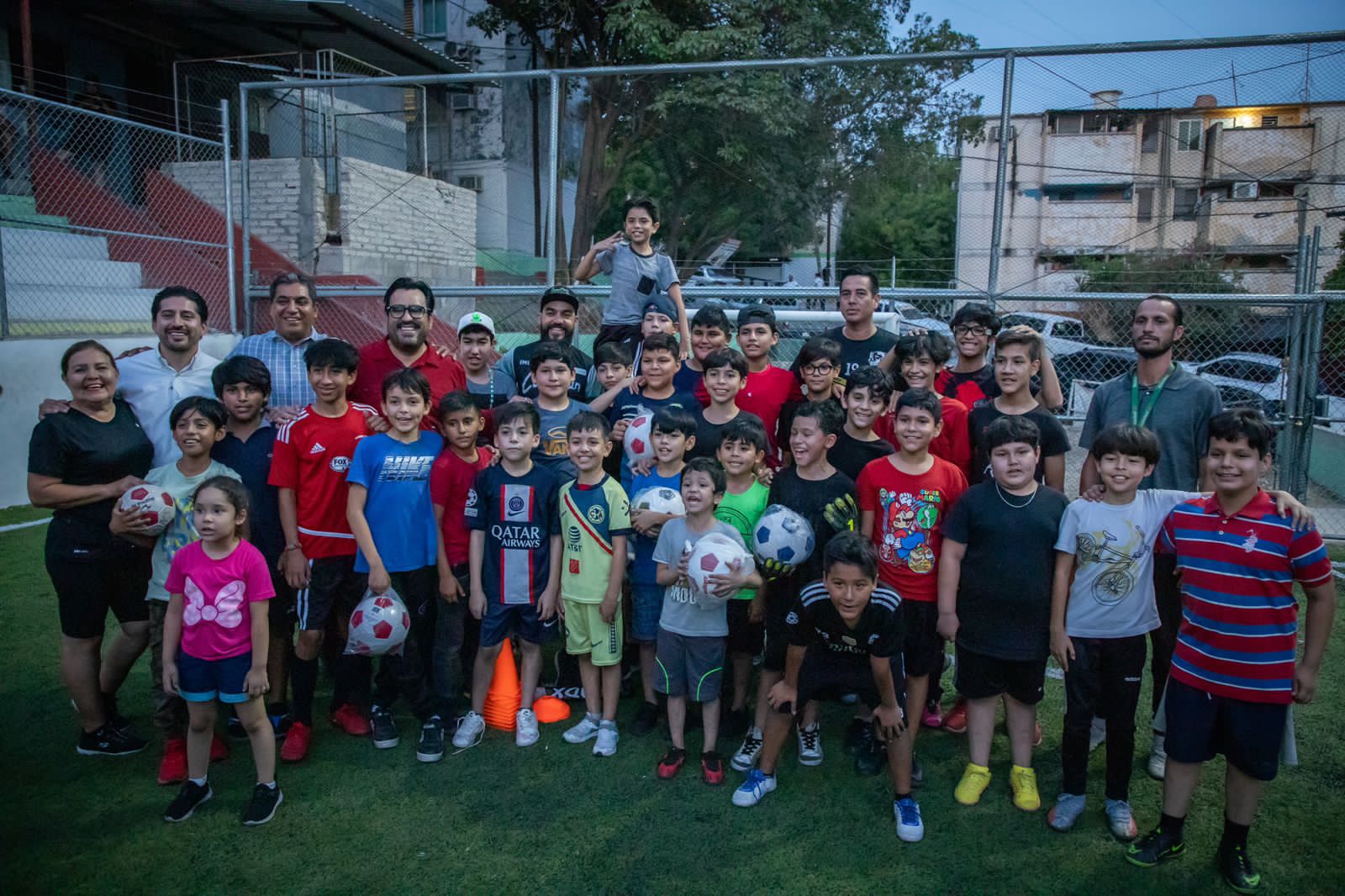 Acompañado del delegado de Programas Federales para el Bienestar Omar López Campos; y del director del IMDEC, Alberto Beltrán, el alcalde realizó algunos tiros junto a los jugadores, haciendo la tarde más amena.