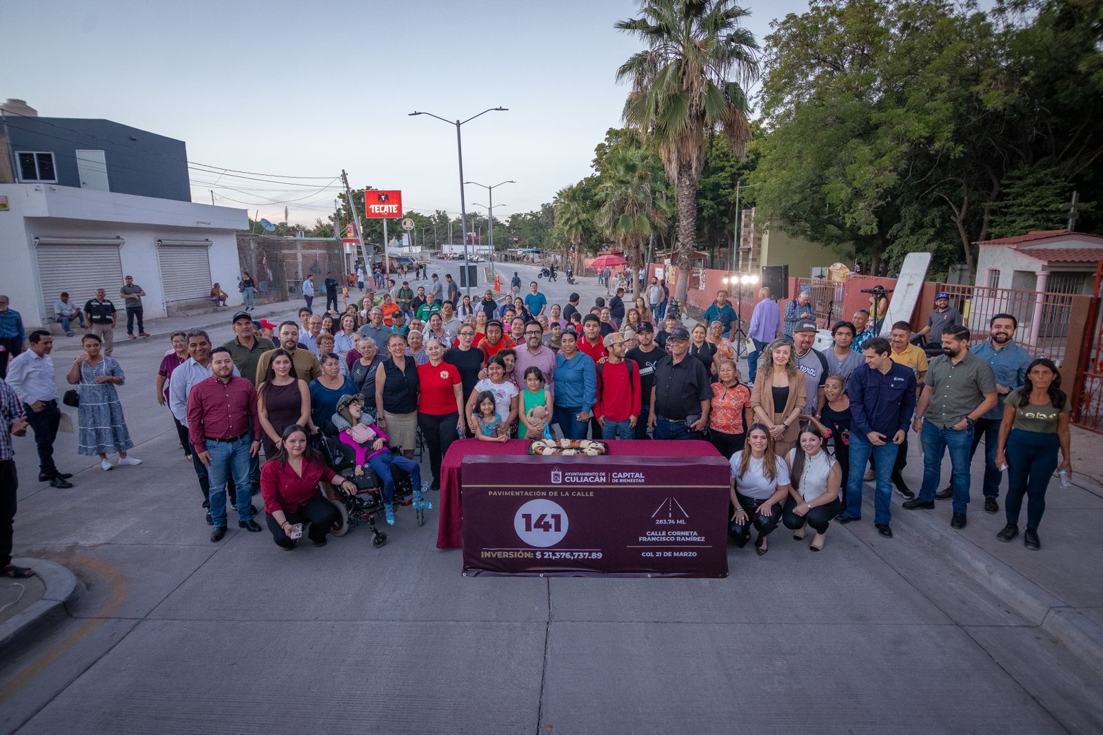 Culiacán, Sin., a 06 de enero de 2026.- La colonia 21 de Marzo celebró la entrega de la pavimentación de la calle Corneta Francisco Ramírez, una obra largamente esperada por las familias del sector y que hoy representa un cambio tangible en su entorno cotidiano.