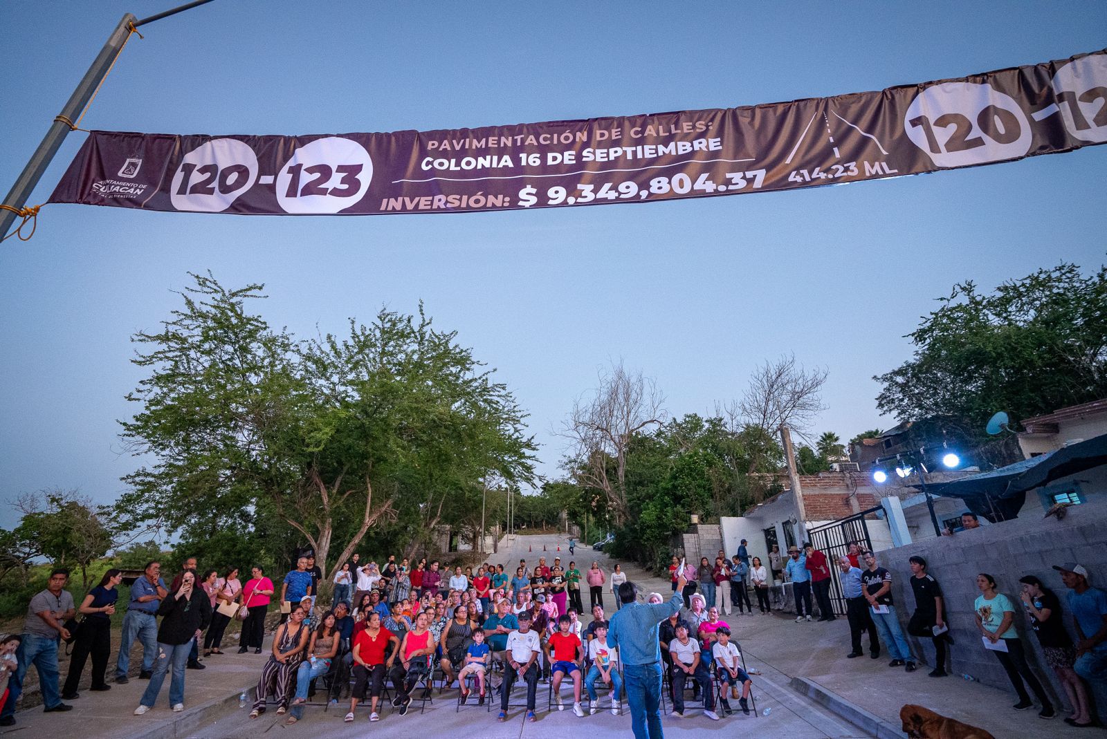Culiacán, Sinaloa.- La esperanza volvió a las familias de la colonia 16 de Septiembre, donde el alcalde Juan de Dios Gámez Mendívil entregó la pavimentación de cuatro vialidades —de la 120 a la 123—, y además anunció que en breve se iniciará con la pavimentación de la calle 7 de Septiembre y que, una vez concluida, comenzarán los trabajos en otra vialidad del sector, reafirmando su compromiso con el bienestar de las familias.