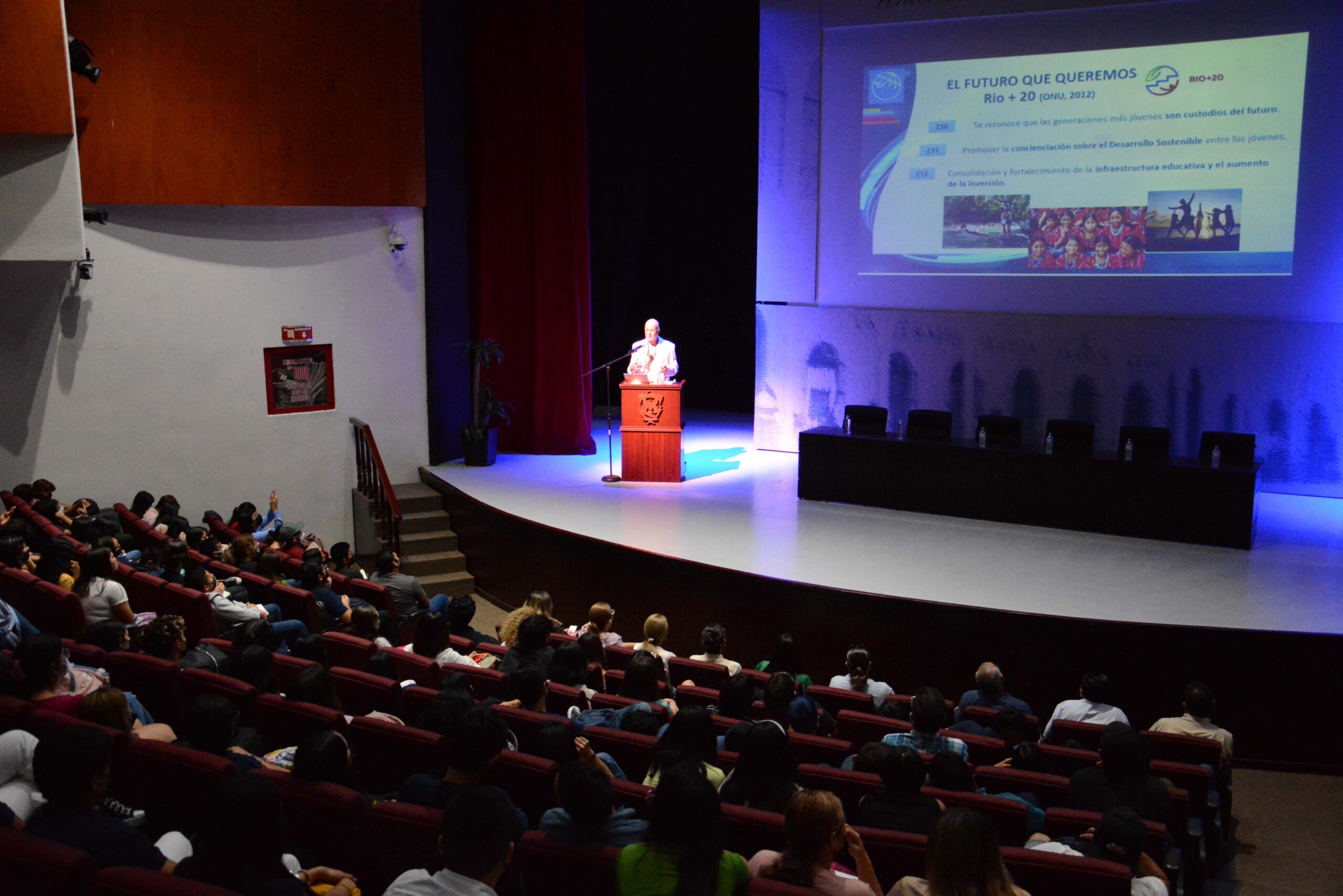 Se dirigió a los alumnos presentes para decirles que son los custodios de la naturaleza, que en ellos se debe promover la conciencia del desarrollo sustentable.