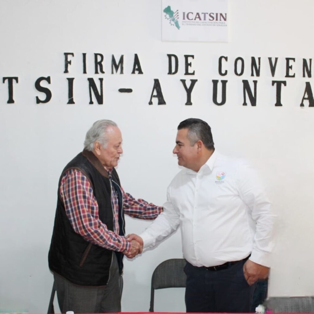 Navolato, Sinaloa.- Con el objetivo y compromiso de impulsar el desarrollo de conocimientos y habilidades en la población, se celebró la firma de convenio entre el H. Ayuntamiento de Navolato y el Instituto de Capacitación para el Trabajo del Estado de Sinaloa (ICATSIN).