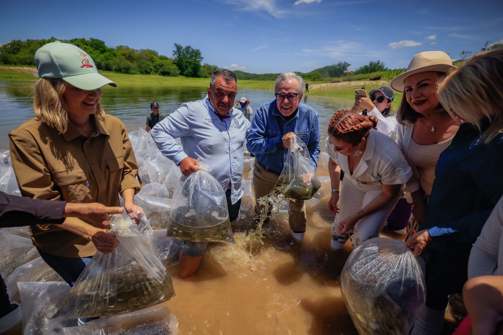 Por su parte, la secretaria de Pesca, Flor Emilia Guerra, destacó que también somos el único estado a nivel nacional que cuenta con este programa de repoblamiento de alevines, donde al inicio del gobierno del doctor Rubén Rocha Moya solo se contaba con un centro reproductor, que es el de la presa de Bacurato, en el municipio de Sinaloa, y ahora gracias al apoyo del gobernador ya se abrieron otros tres centros más, en El Varejonal, otro en Mazatlán y éste de la presa Picachos, avalados por las dependencias de Senasica, Conapesca y todas las instituciones federales que regulan esta actividad.
