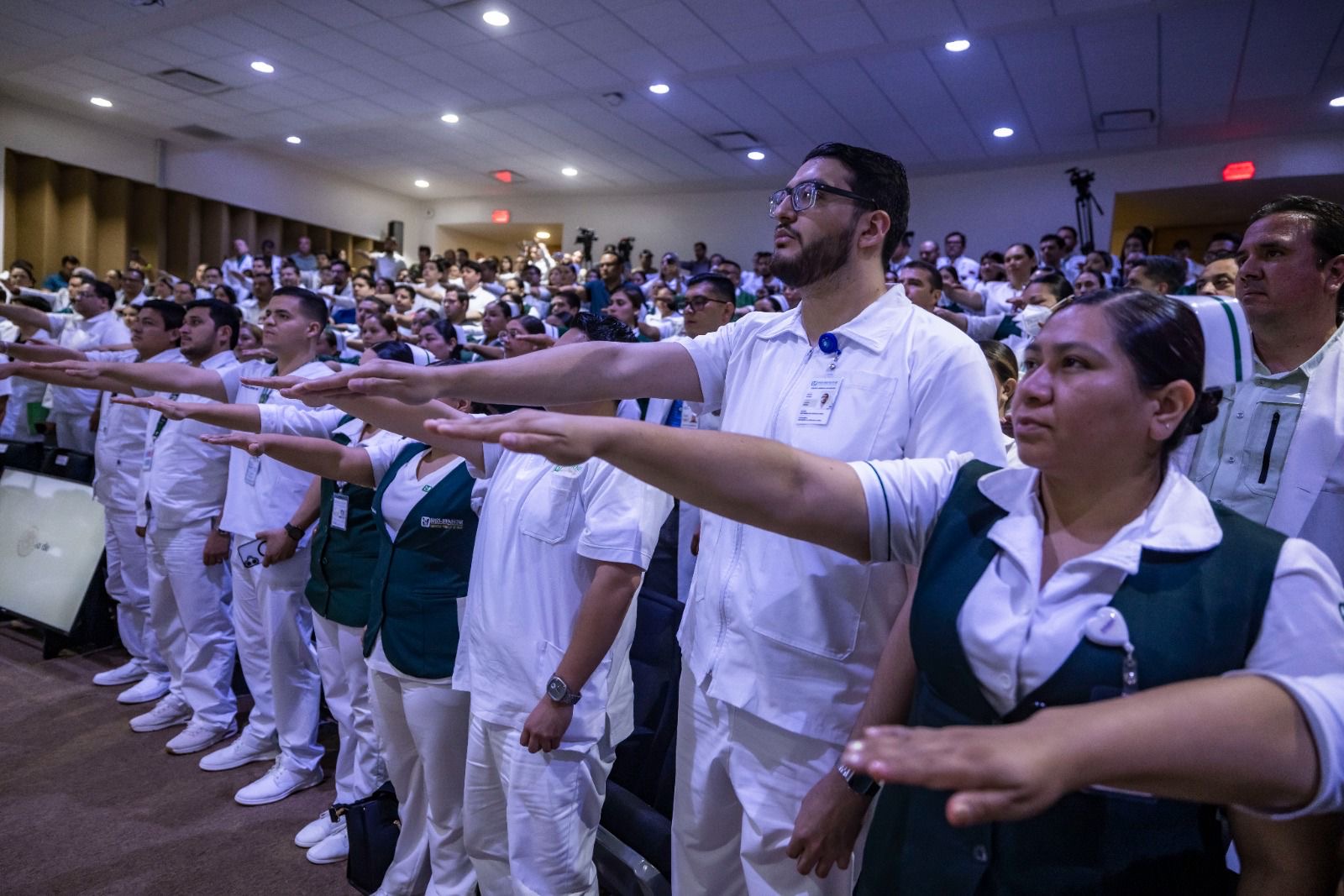 En este evento de bienvenida a los nuevos especialistas y personal de enfermería, el gobernador del estado estuvo acompañado por el secretario de Salud, doctor Cuitláhuac González Galindo; por el director del Hospital General de Culiacán, el doctor Jesús Ramón Figueroa Vega; y por la enfermera del Hospital Pediátrico de Sinaloa, Laura Marisela García Velázquez.