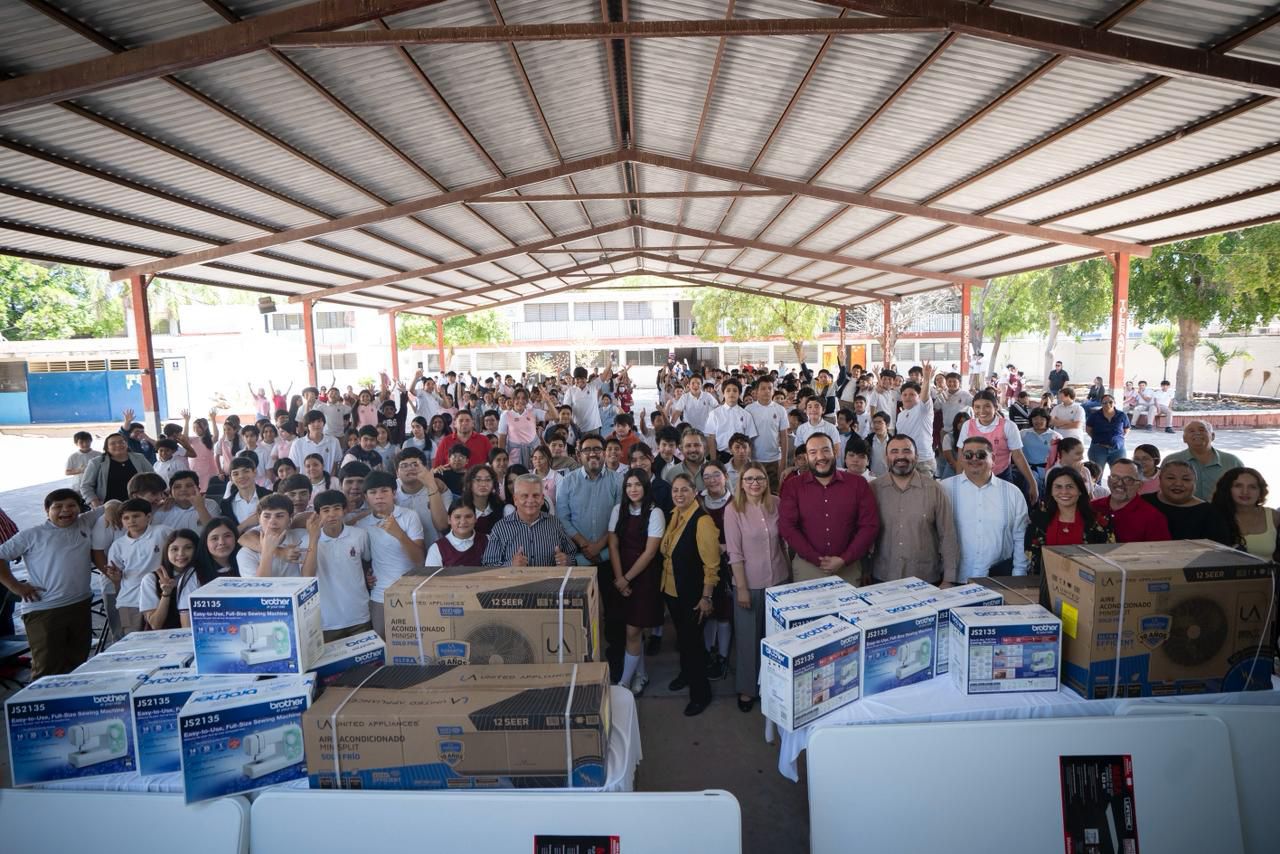 - El alcalde Juan de Dios Gámez entrega equipos minisplit, máquinas de coser y mesas en la secundaria “Juan de Dios Bátiz”