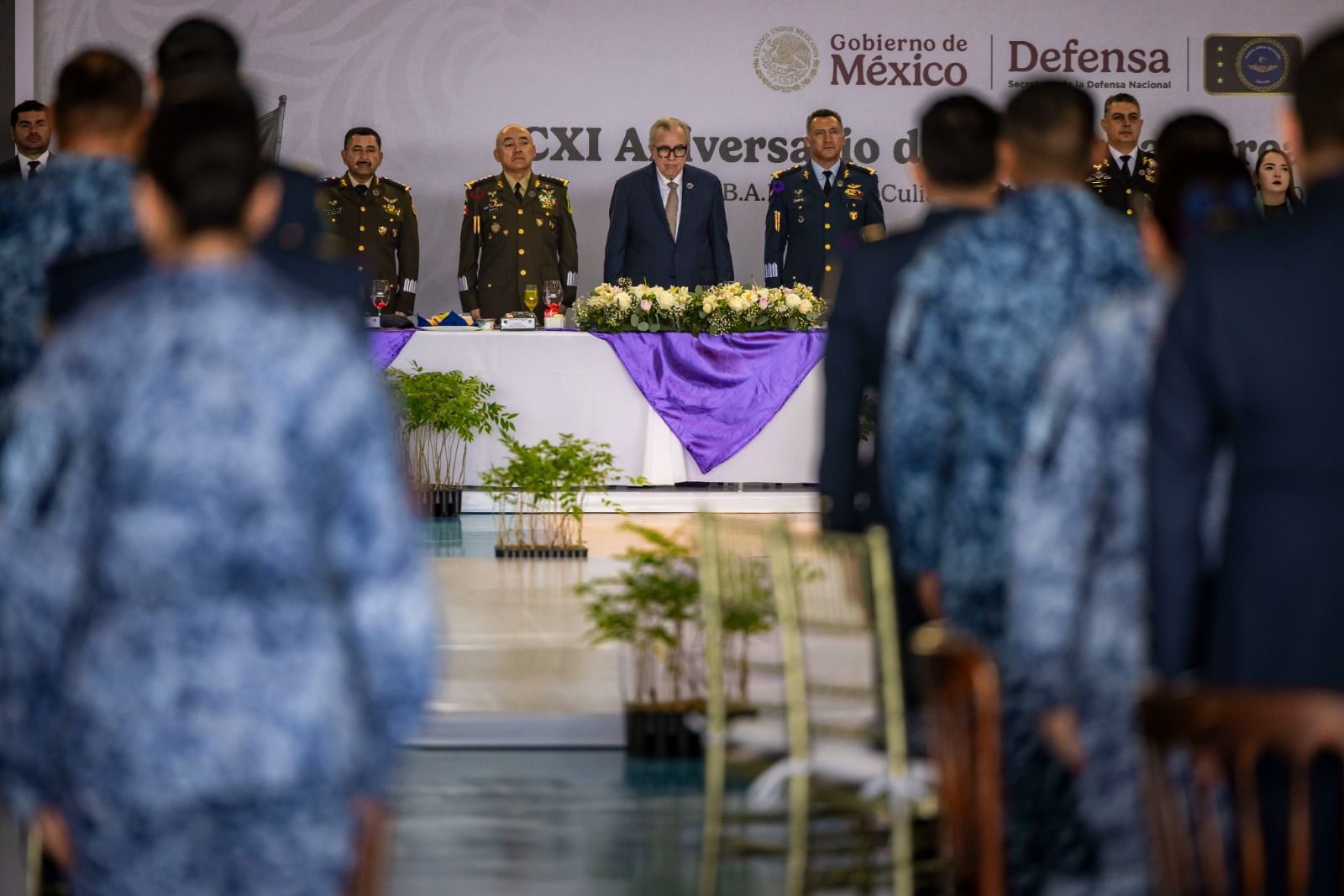 El evento, que se desarrolló en las instalaciones de la Base Aérea Militar número 10, contigua al Aeropuerto Internacional de Culiacán, estuvo encabezada por el General Ala Piloto Aviador de Estado Mayor Edgar Emmanuel Campos Martínez, Comandante de dicha Base; el Gobernador de Sinaloa, doctor Rubén Rocha Moya; el comandante de la Tercera Región Militar, general de División, Héctor Ávila Alcocer, y diversas personalidades.