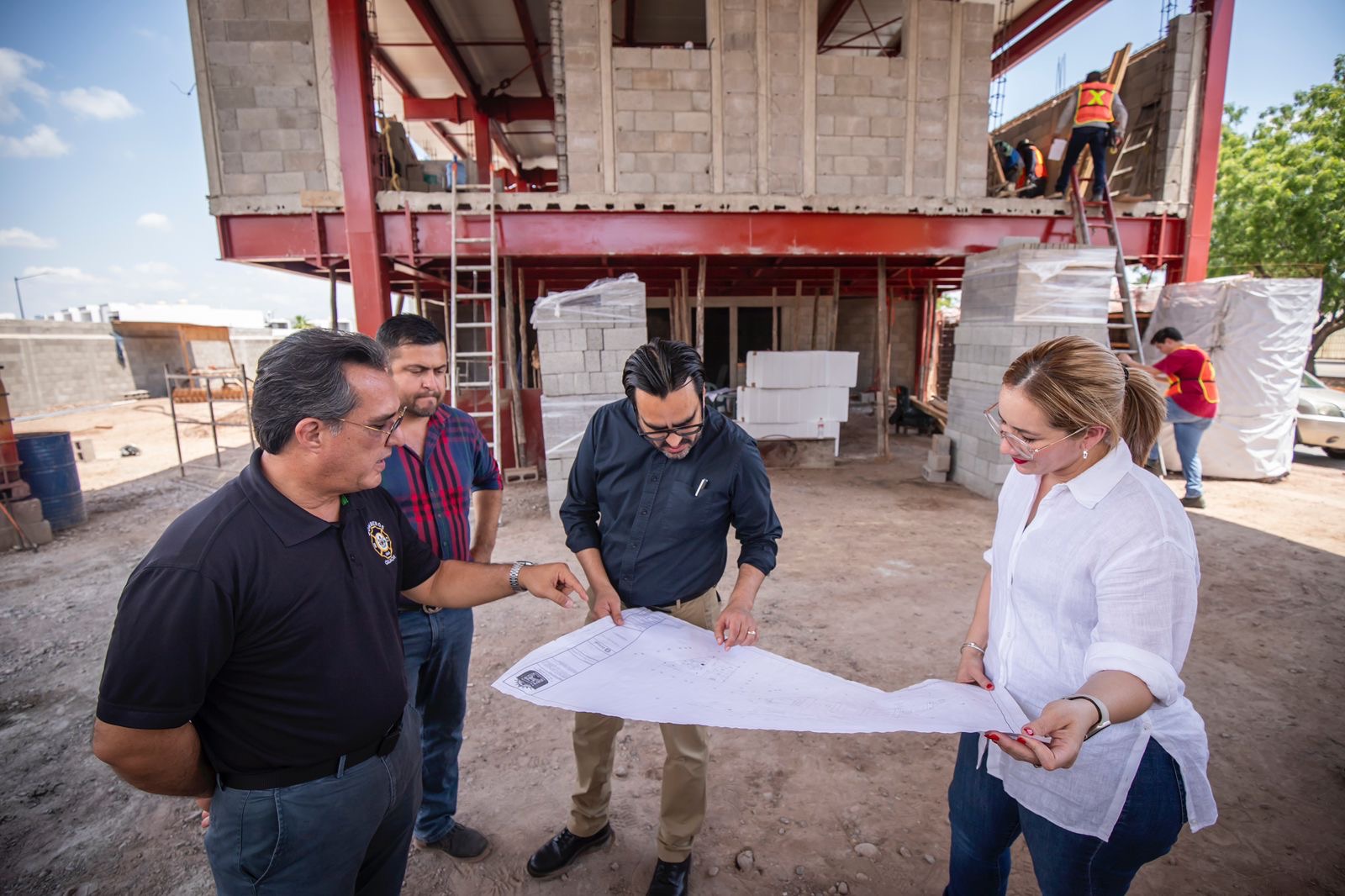 Culiacán, Sinaloa.- Los trabajos de construcción de la quinta estación de bomberos en el sector La Conquista, fue supervisada esta mañana por el alcalde Juan de Dios Gámez Mendívil, la secretaria de Obras y Servicios Públicos, María del Carmen Morales Donada, y el director general del Patronato de Bomberos Culiacán, Guillermo Chu Valenzuela.
